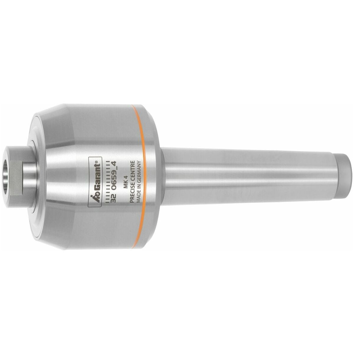 Centreringsspetsen sätts fast med en morsekon. Arbetsstycket spänns fast i spännchucken och en försänkning anbringas med en centreringsborr. Efter omspänningen förs centreringsspetsen in.