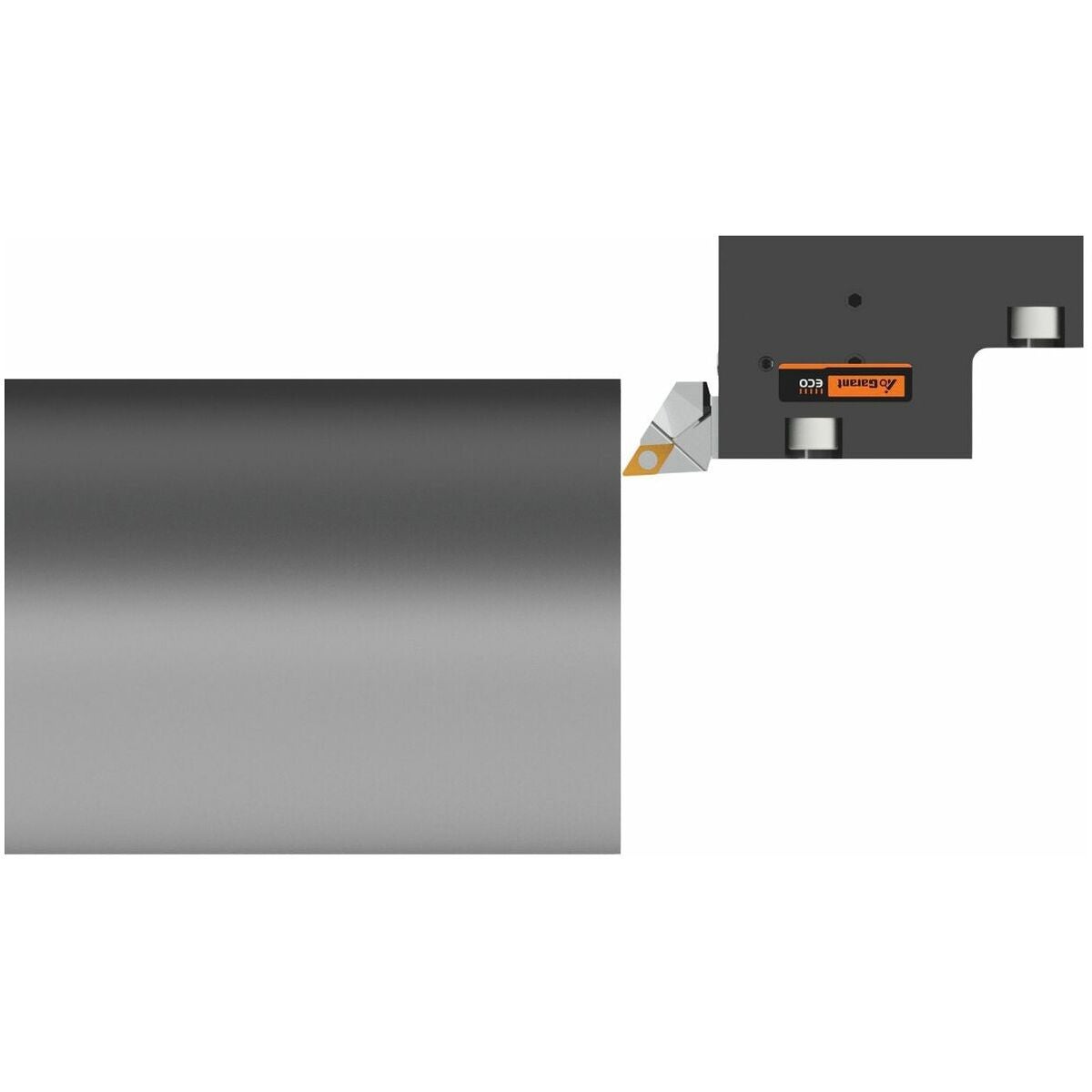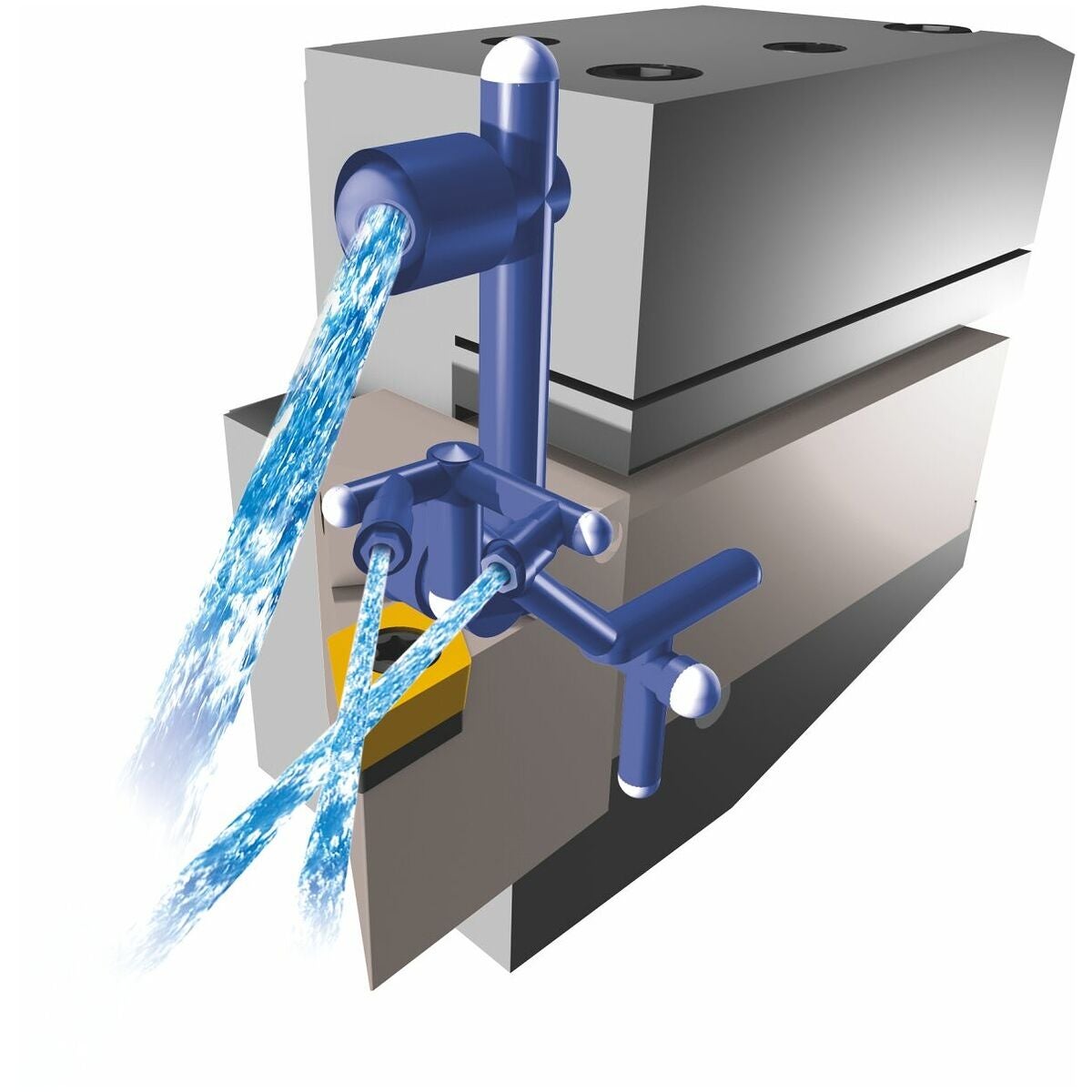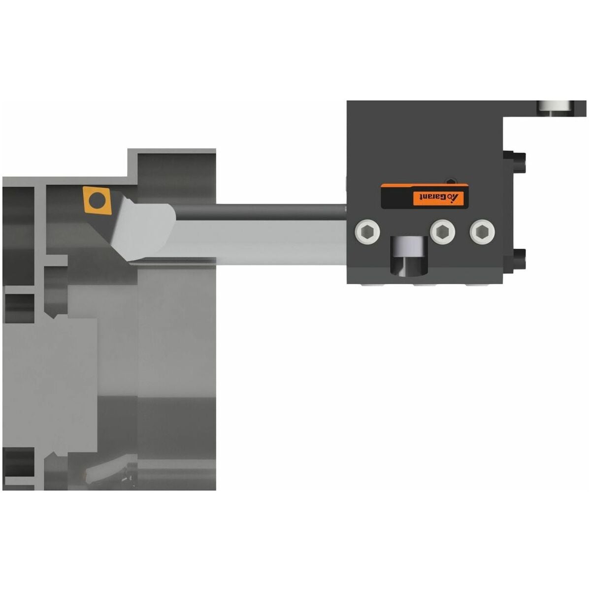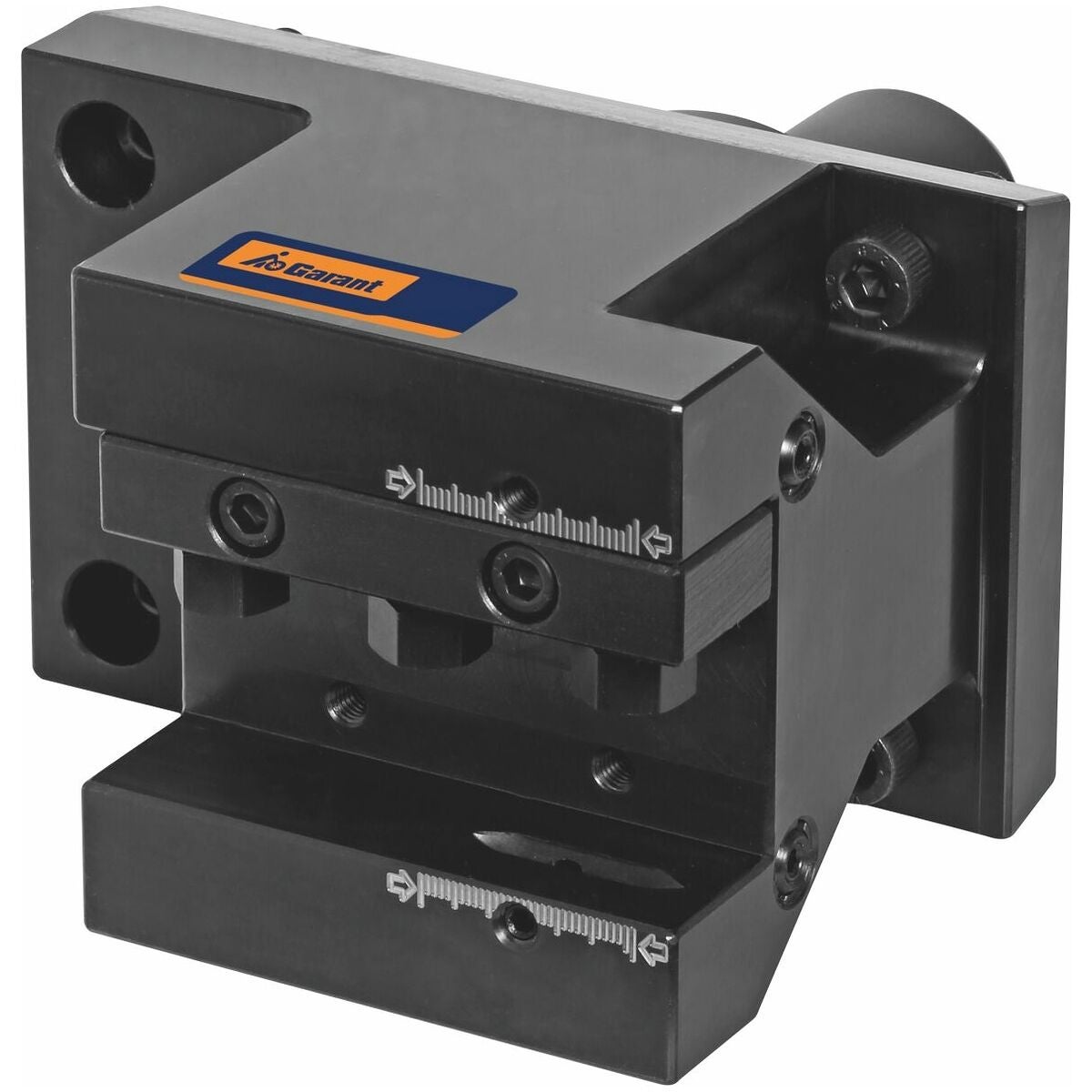Lämplig för effektiva kylsystem som GARANT eco, men även för andra system. Optimerad ytterkontur. Skala för optimal inställning av bearbetningsverktyget. Fjädrad tryckplatta för jämn fastspänning av svarvstålen.