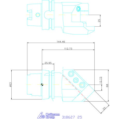 Eco-verktygsfäste diagonal 45°, höger 25 mm