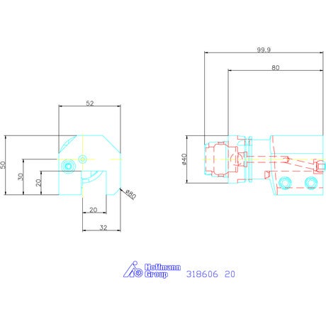 Verktygshållare axiell, enkel, vänster 20 mm