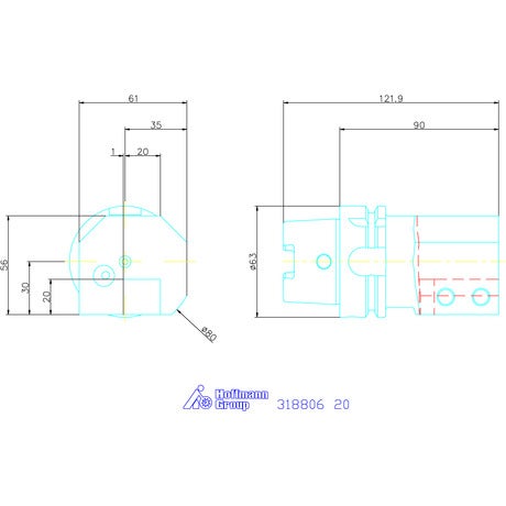 Verktygshållare axiell, enkel, vänster HSK-T 63