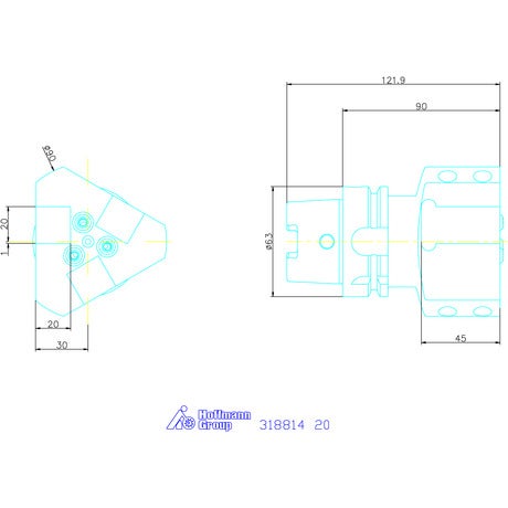 Verktygshållare axiell, trippel, höger HSK-T 63