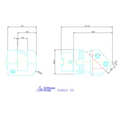 Verktygshållare diagonal 45°, höger HSK-T 63