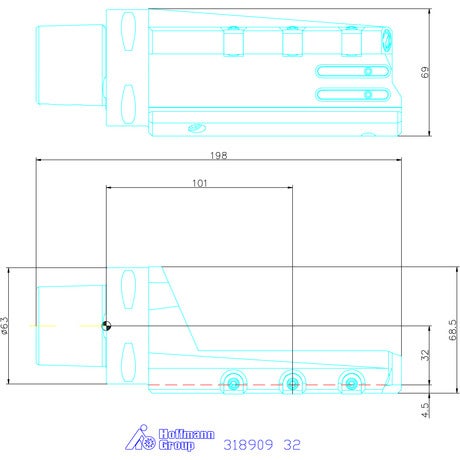 För fastsättning av stickstål med kylvätskeöverföring från alla vanliga tillverkare. Överföringshål som inte behövs kan slutas till med de skruvar som ingår i leveransen. Inklusive kulsprutmunstycke.