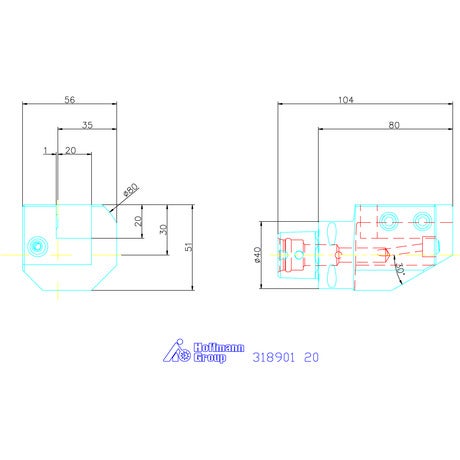 Verktygshållare axiell, enkel, höger 20 mm