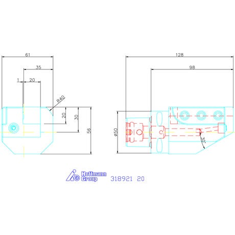 Verktygshållare axiell enkel, höger 20 mm