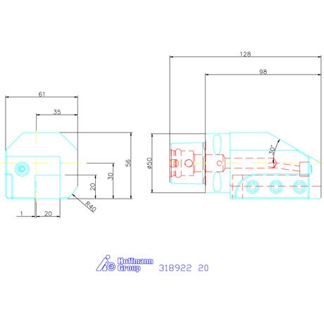 Verktygshållare axiell enkel, vänster 20 mm