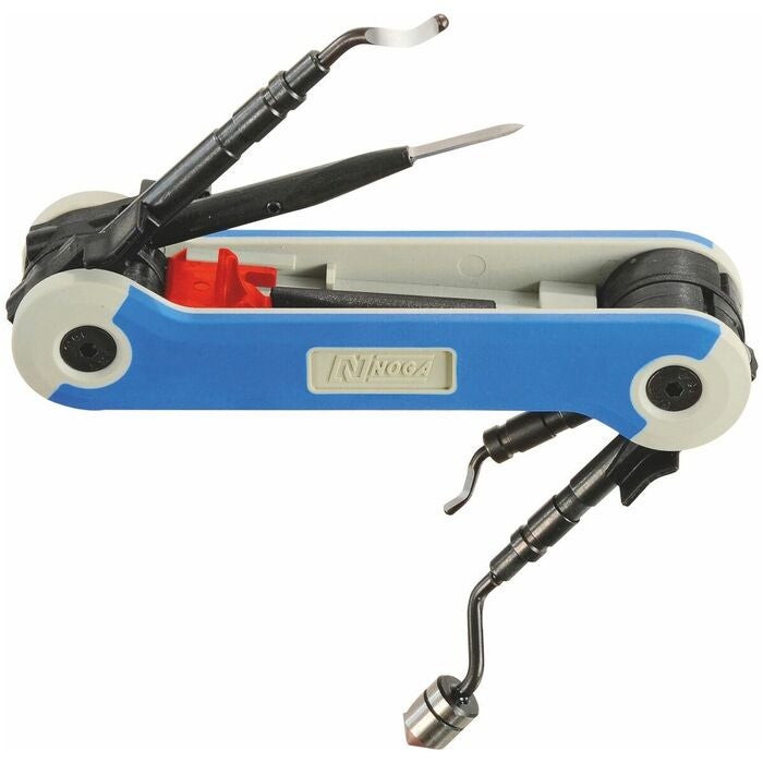 LeveransinnehållFällbar hållare med 1 HSS-klinga nr 838510 storlek S10,1 hålgradningshuvud nr 838610 storlek 10,4,1 HSS-klinga nr 839010 storlek N2 och1 rakt miniskavstål nr 839677.