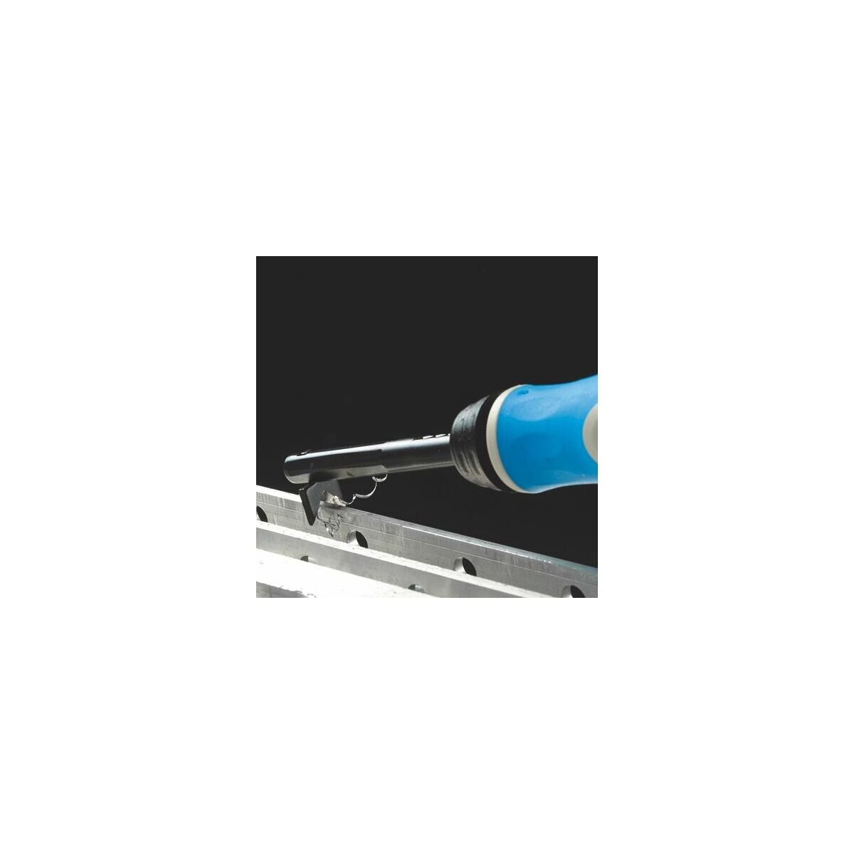 2K-grepp med teleskopskaft och utbytbar V-klinga för materialtjocklek 1 − 8 mm.