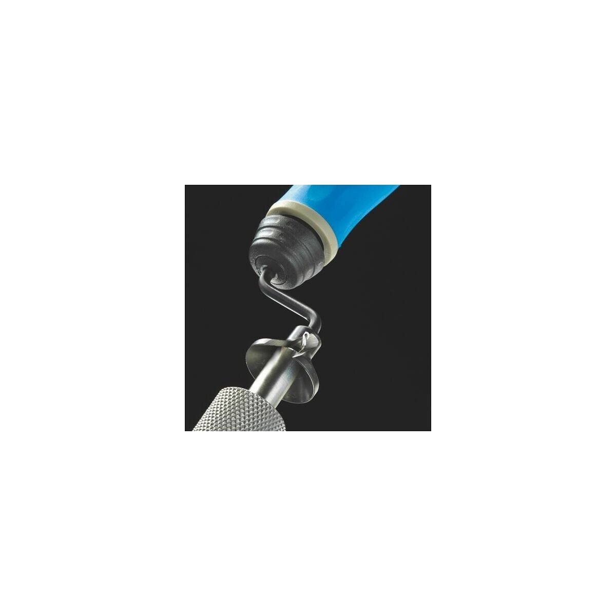 Handtag med vridbart lagrade, utbytbara gradningshuvuden. Enkel hantering tack vare vevsystem.