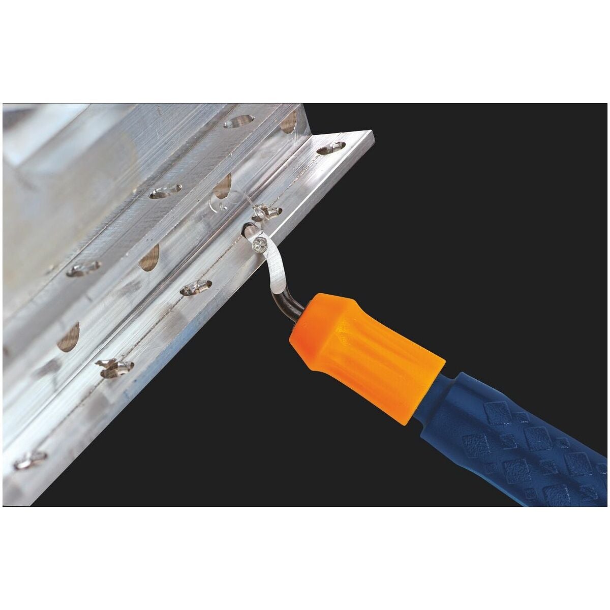 Plasthandtag med fästklämma och med vardera en utbytbar klingaLeveransinnehåll
