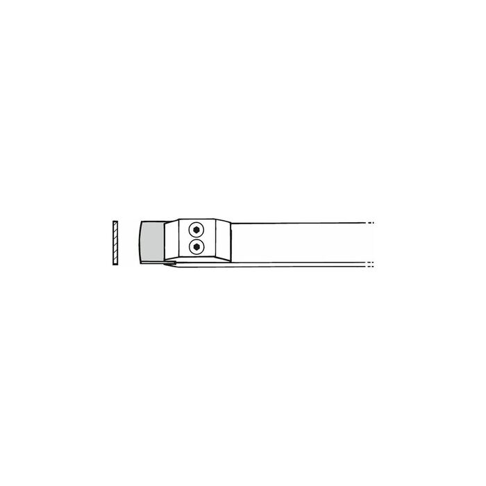 Kraftigt plattstål med inspänningsmekanism och utbytbar hårdmetallplatta med fyra skär. Hårdmetallplattan är slipad och klar att använda, har fyra skär och är vändbar.