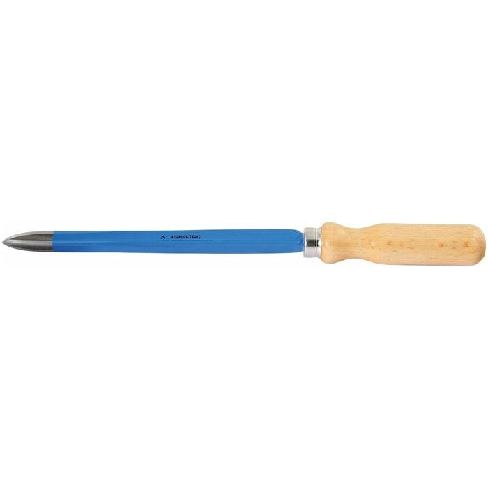 Trekantiga, skålslipade skär, av kromvanadinstål, lackerat träskaft.