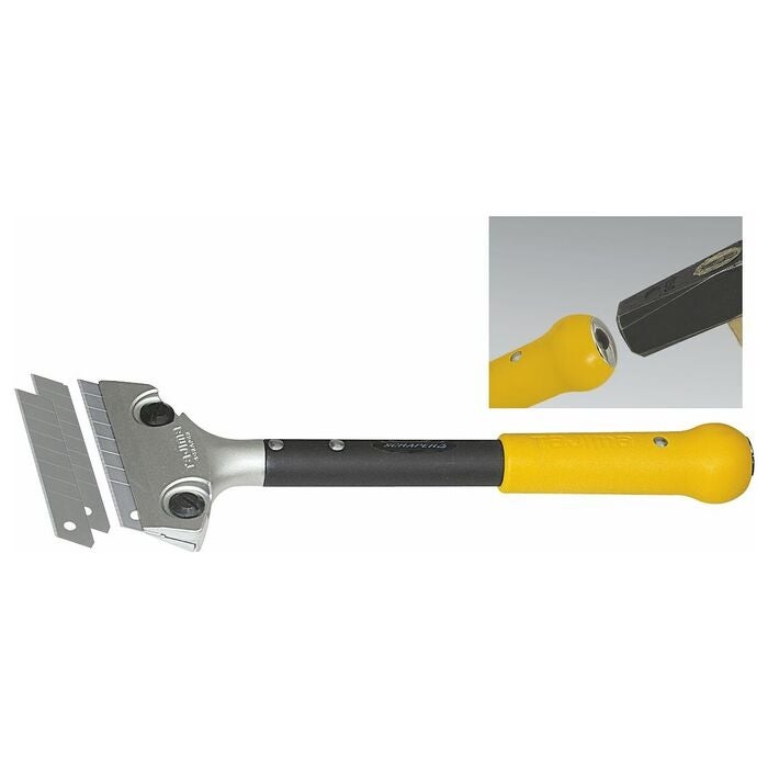 Lätt och smidigt universalskavstål av aluminiumgjutgods med slagkåpa av stål i handtagsänden. Halksäkert ergonomiskt plasthandtag för säkert och bekvämt arbete. Skavstålet motsvarat ett vanligt förekommande 18 mm brytblad (nr 845010 10) för storlek 1 − 3 och 22 mm (nr 845110 10) resp. 25 mm (nr 837755) för storlek 4, som går snabbt och enkelt att byta (klämmekanism).