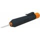 Universal-verktygshållare med 4-backchuck av plast med utbytbar triangulärt blad. I hållaren kan allt efter önskemål en klinga med skaftdiameter 3,2 mm (nr 839676; 839677; 836420; 836425) eller en T-klinga med skaftdiameter 4,2 mm (nr 836410) användas. På hållaren finns dessutom ett praktiskt klipp för fastsättning.