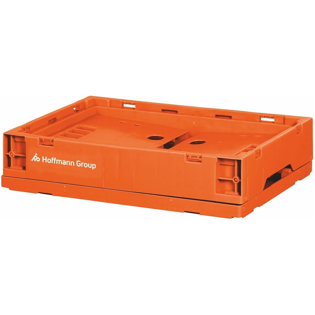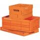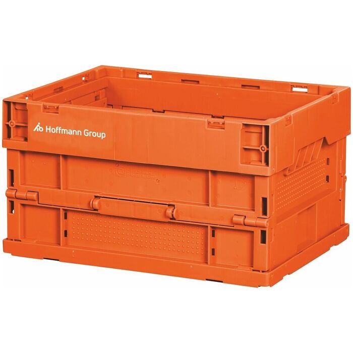 Stapelbar plastlåda av polypropylen. 2 hopfällbara lådor i storlek 19 passar på 1 hopfällbar låda i storlek 42. När lådan fälls ihop sparas 64 % av volymen.