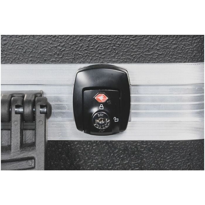 Extremt motståndskraftiga och slagtåliga HDPE-väsklådor med aluminiumram, förstärkta hörn och 2 TSA-lås (nr 692918).