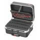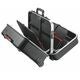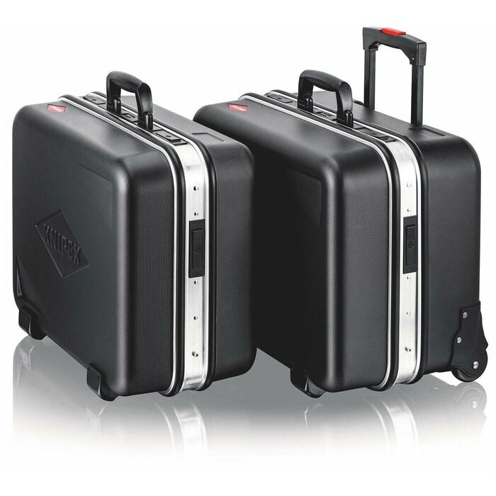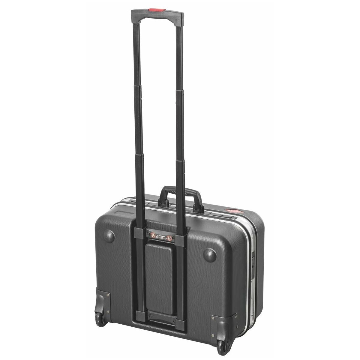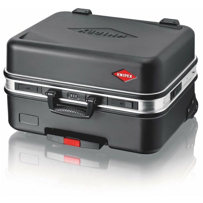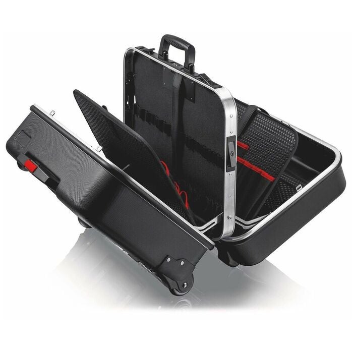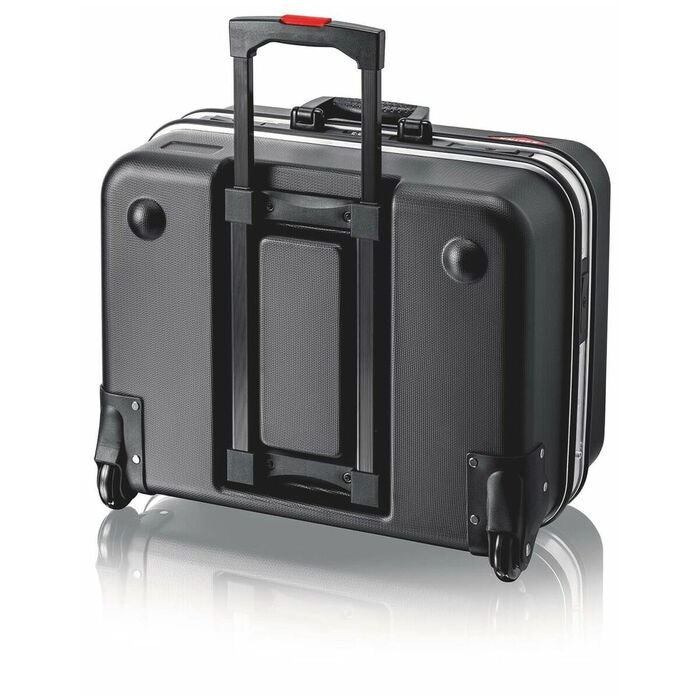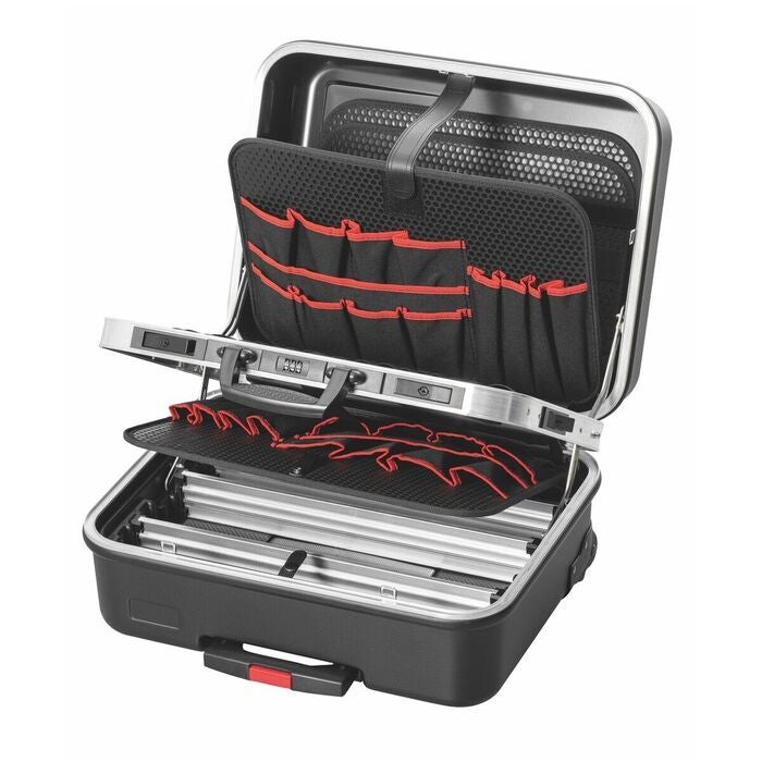 Slitstark utförande av ABS-material i svart med omslutande aluminiumram och metallgångjärn. Lådan levereras med ett stabilt och ergonomiskt bärhandtag. För individuell märkning ingår 2 klistermärken för märkningsfältet. Verktygstavlorna består av smutsavvisande ihåliga PP-plattor.