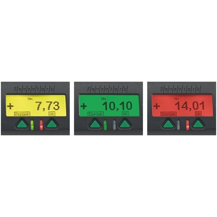 - Bakgrundsbelysning av displayen för bättre läsbarhet och bedömning av skruvningsförloppet (trafikljusprincip).