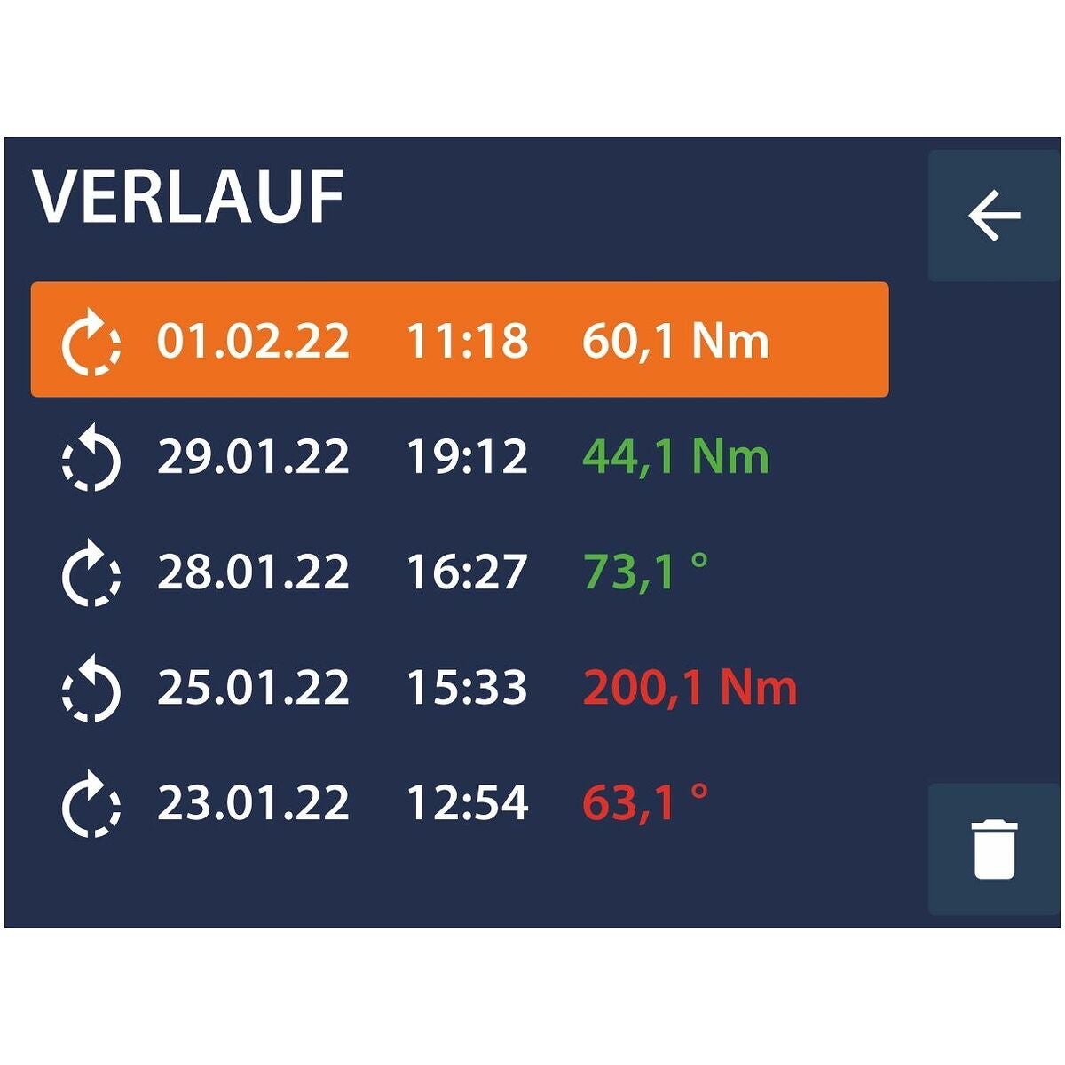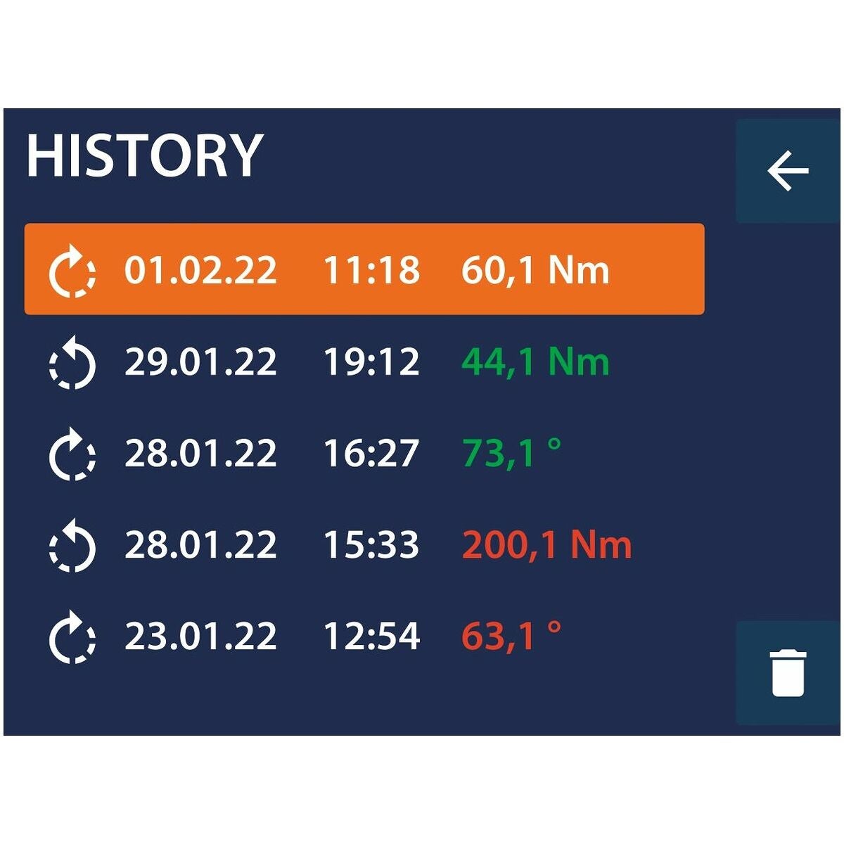 - Datautgång: Möjligt via Bluetooth® eller USB-C. Via Bluetooth®: Via appen som.csv-fil eller direkt på momentnyckeln via HID-gränssnittet för enkel och bekväm digital dokumentation. Via USB-C-gränssnittet: Uppgifterna kan exporteras som .csv-fil.