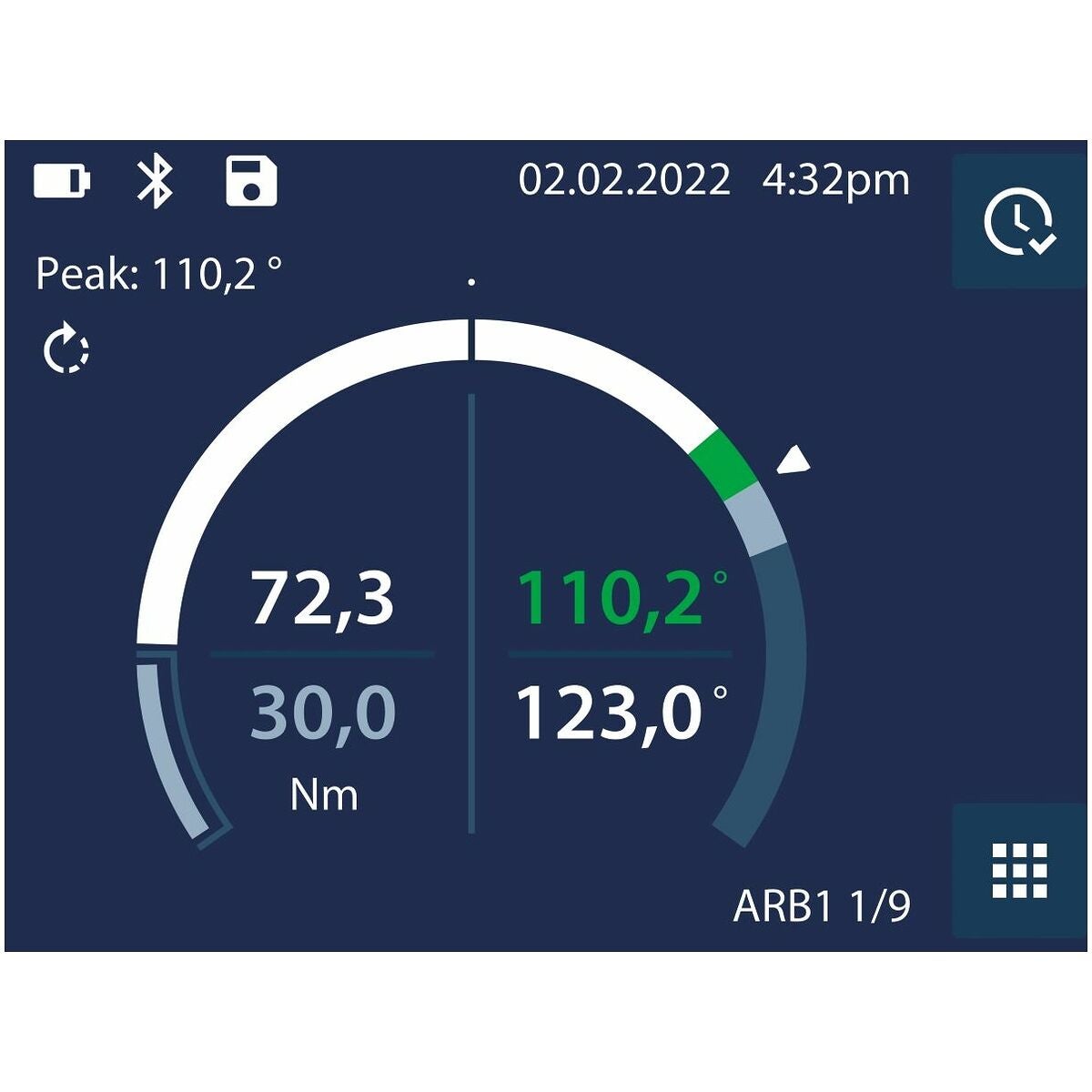 - Display: Stor, konstrastrikt lysande blickvinkelstabil 2,8 tum TFT-display med dubbelskala. Med batteri- och minnessymbol. Vridmoment och vridvinkel kan ses samtidigt.