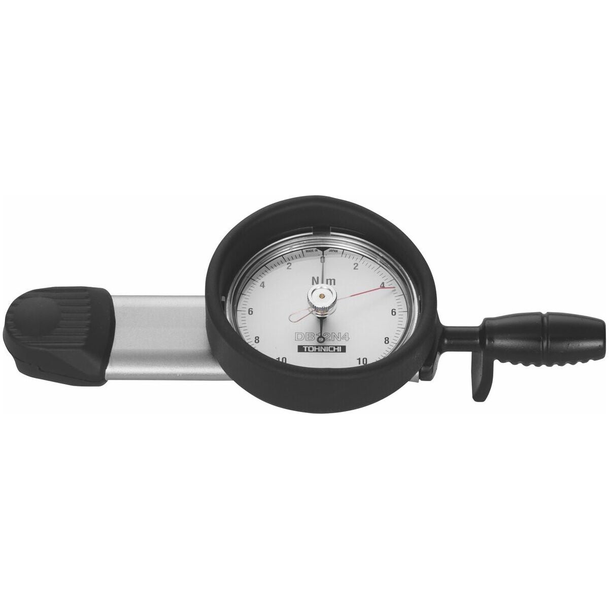 Enarmad; slank konstruktion med enkelt avläsbart mätur. Helt av förkromat stål med fast anslutningsfäste för hylsor.
