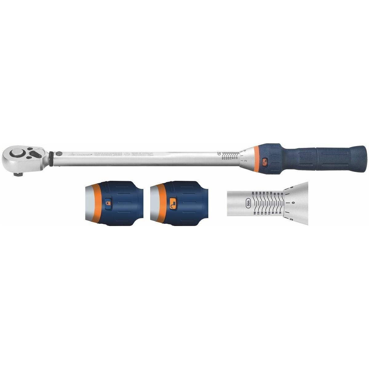 Praktisk och mycket kompakt, enarmad momentnyckel, inställbar via skala och med automatisk utlösning. Extremt hög repeternoggrannhet då uteslutande förstklassiga material används samtidigt som tryckfjädrar och andra slitdelar väljs ut och förbehandlas med stor omsorg. Spärrhuvudet är omställbart mellan höger- och vänsterdragning.