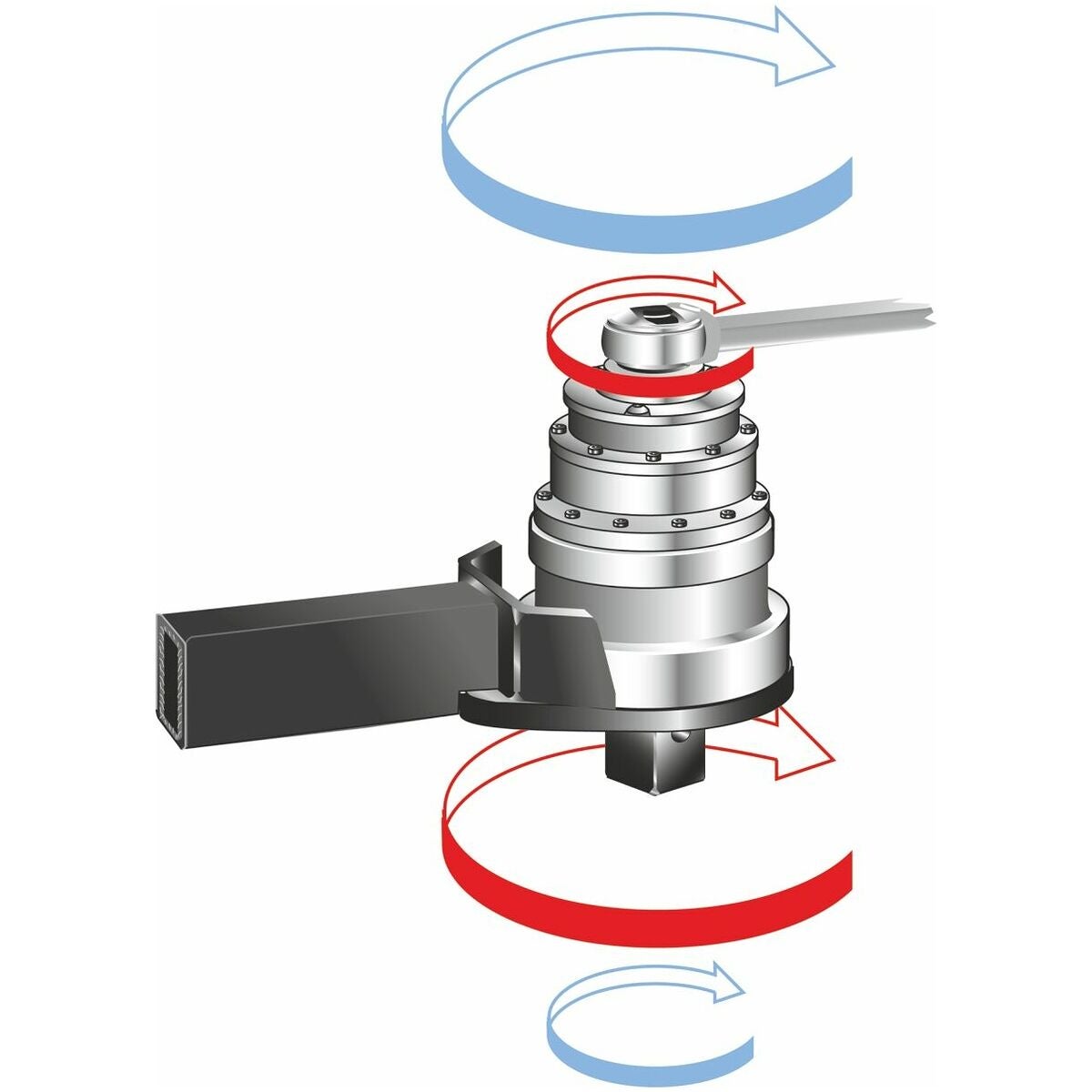 Mekanisk, handmanövrerad momentomvandlare för kontrollerad skruvdragning. Förstärkare och stöd av högvärdigt stål. Med överlastskydd för växeln.