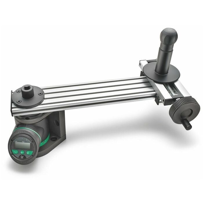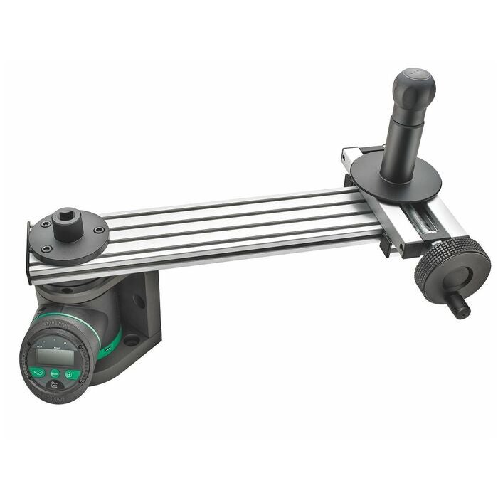 Variabel och flexibel vridvinkelprovare tack vare utbytbara stöd för vridvinkelnycklar upp till 400 Nm. Display, displayhållare och stomme kan vridas 180°. Displayen och folietangentbordet är stänkvattenskyddade och höljet består av slagtålig plast. För transport kan vridarmen fixeras. Vridvinkelmätningar upp till 720° med förval av börvärde och utvärdering av mätresultaten direkt på apparaten. USB-gränssnitt för dokumentation av kontrollvärdena. Dessutom ett dubbelriktat gränssnitt som gör det möjligt att parametrisera nya kontrollvärden och att använda egna reglersystem. Upp till 2000 kontrollvärden med tidsstämpel kan sparas i apparaten. Dokumentationsprogram finns som tillval via kostnadsfri nedladdningslänk.