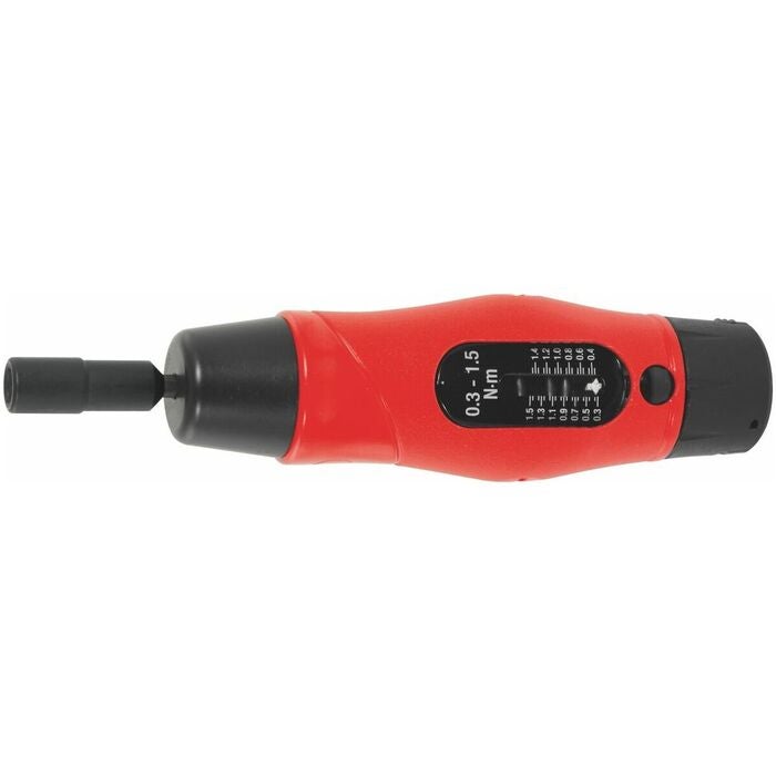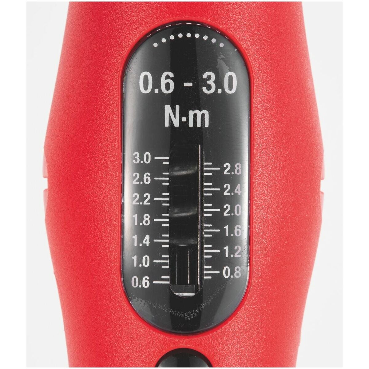 Smidigt handtag för enkel överföring av inställda vridmoment. Lättavläst smutsskyddad mikrometerskala. Spärr mot oavsiktlig ändring i handtagsänden. Utbytesklinga för infästning av 1/4 tum-bits ingår i leveransen.