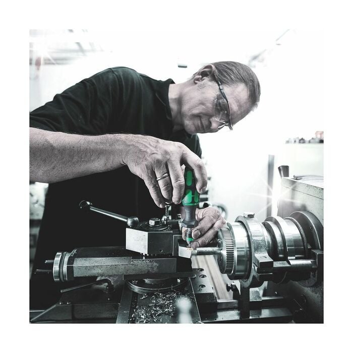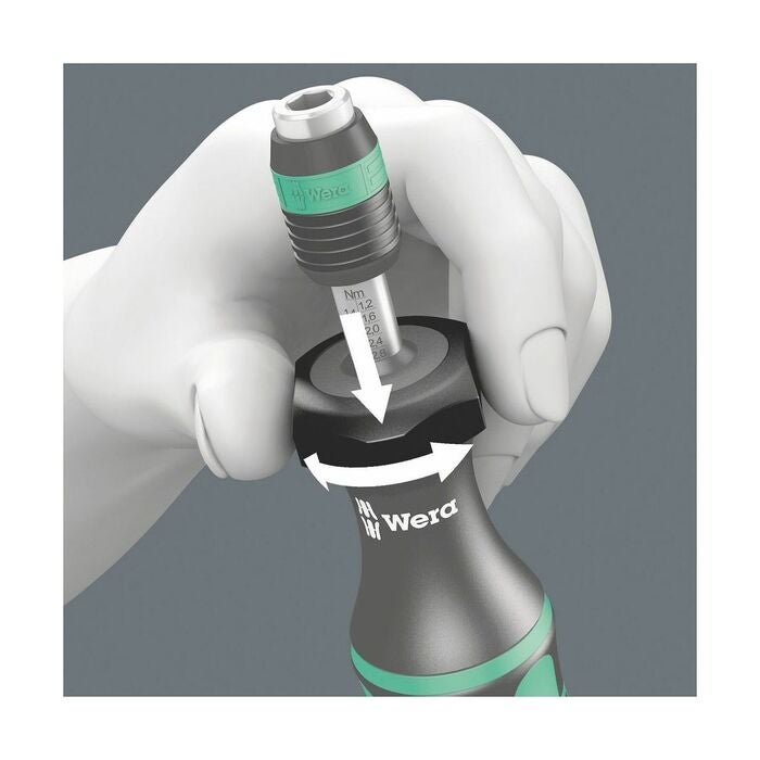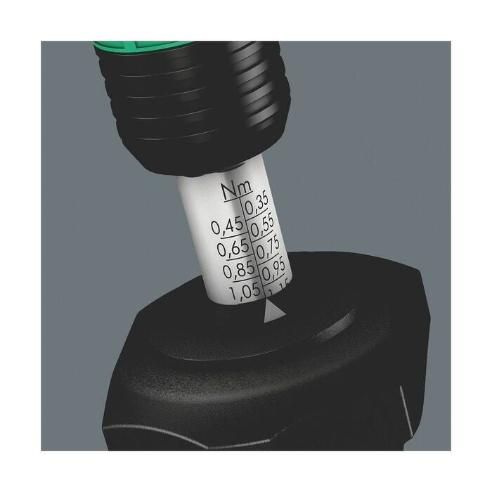 Vridmomentet ställs in för hand med mikrometerskala (från storlek 600 med inbyggt hjälpverktyg eller fast skruvnyckel med nyckelvidd 17).