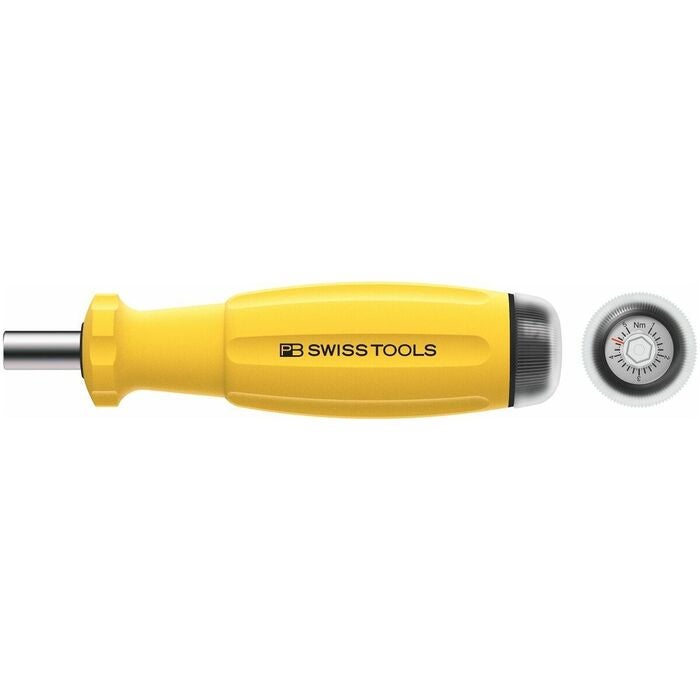 Önskat moment ställs in med ett inställningshjul vid handtagets ände. Spärrläget förhindrar oavsiktlig ändring av inställningen. Lättavläst smutsskyddad mikrometerskala.