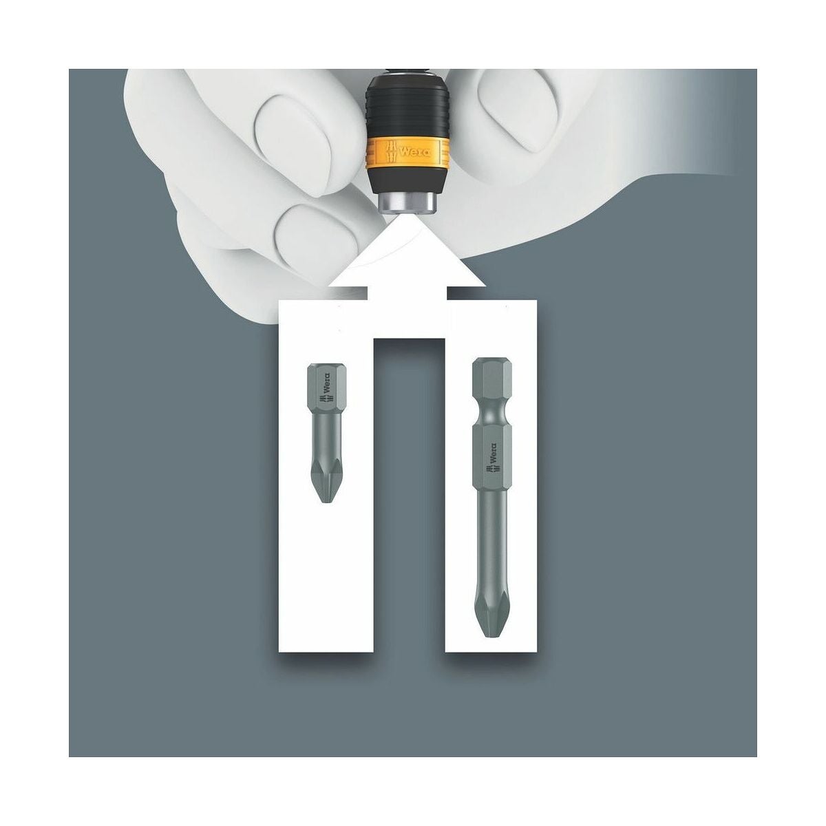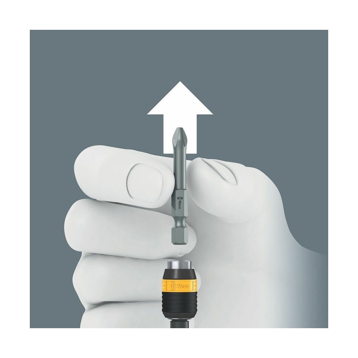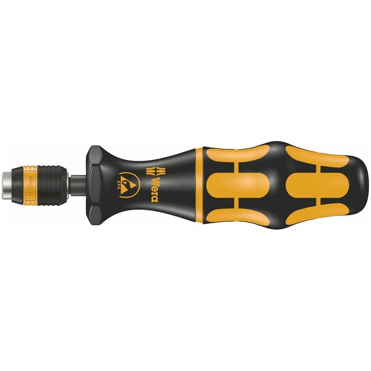 Kraftform-handtag som enkelt överför erforderliga vridmoment. Med Rapidaptor-snabbytesfäste för 1/4 tum bits med C 6,3- och E 6,3-skaft.