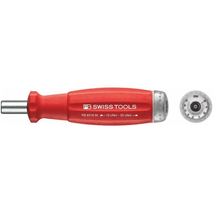 Önskat moment ställs in med ett inställningshjul vid handtagets ände. Spärrläget förhindrar oavsiktlig ändring av inställningen. Lättavläst smutsskyddad mikrometerskala.