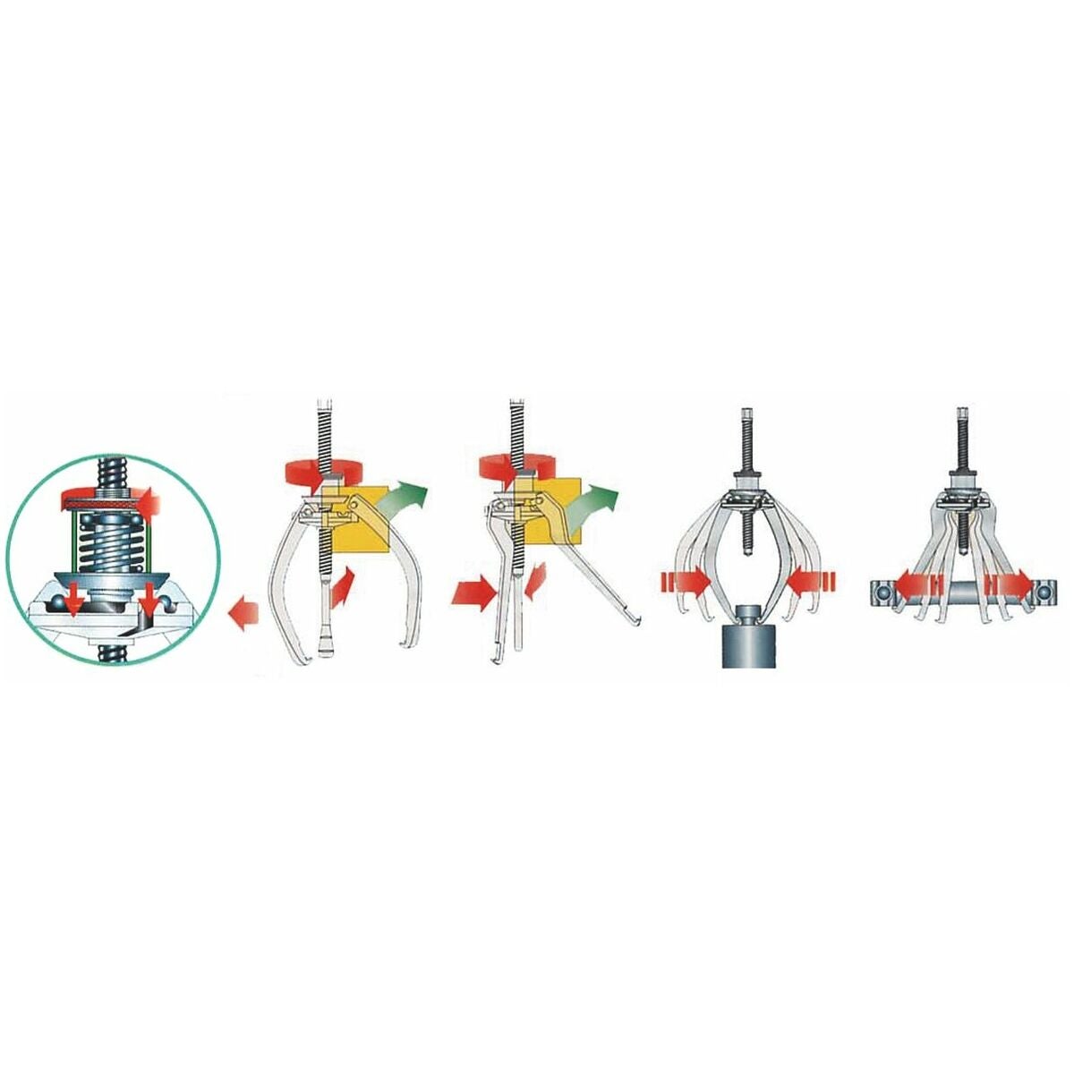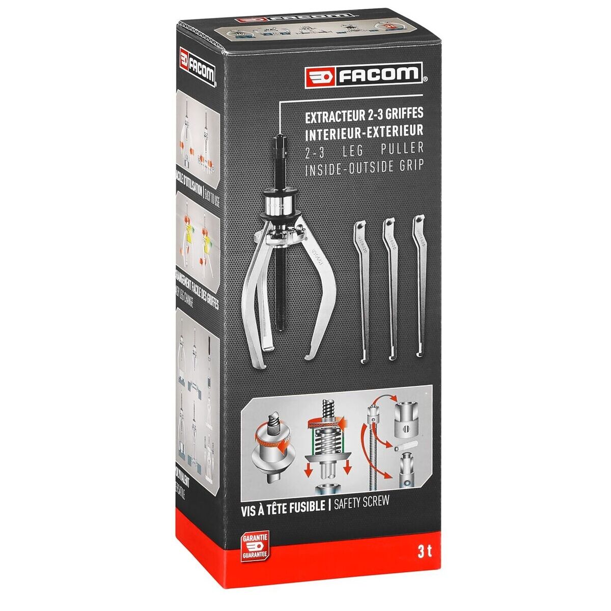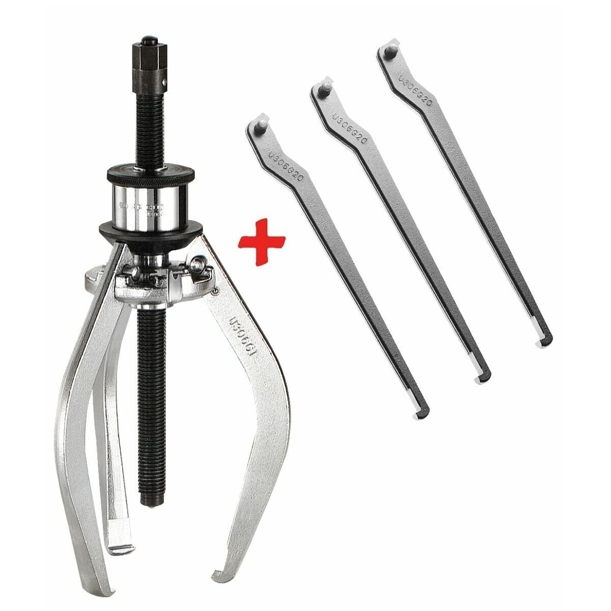 Med två uppsättningar vändbara armar för invändig och utvändig dragning. Två eller tre armar kan användas på avdragaren.