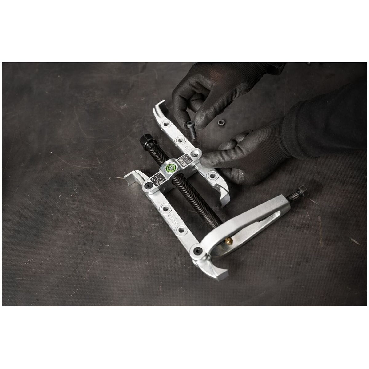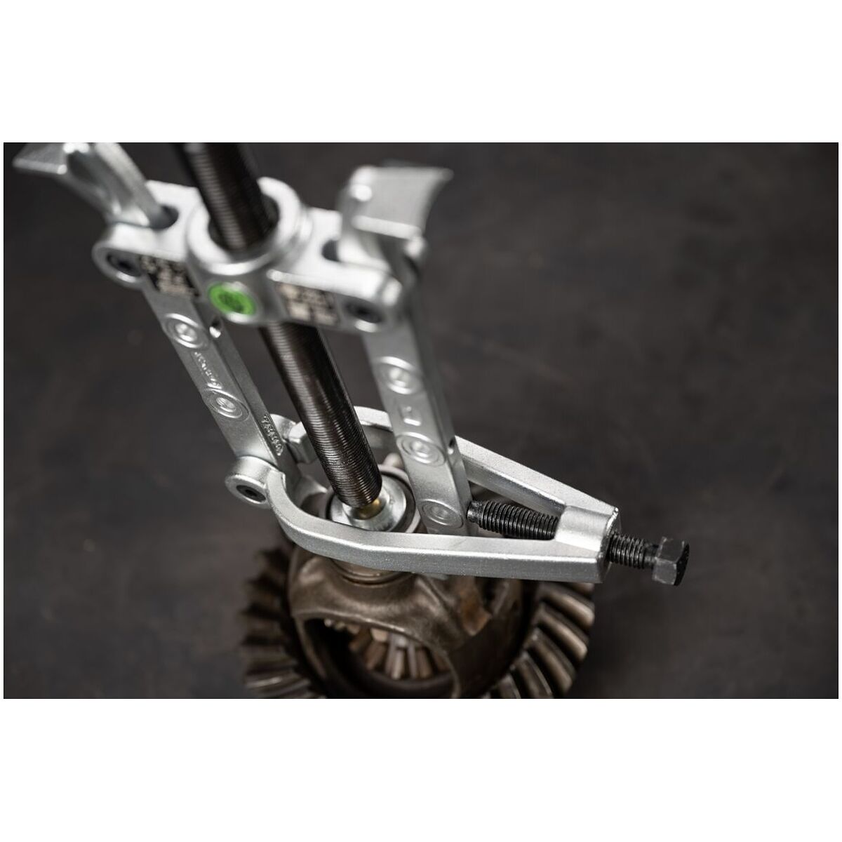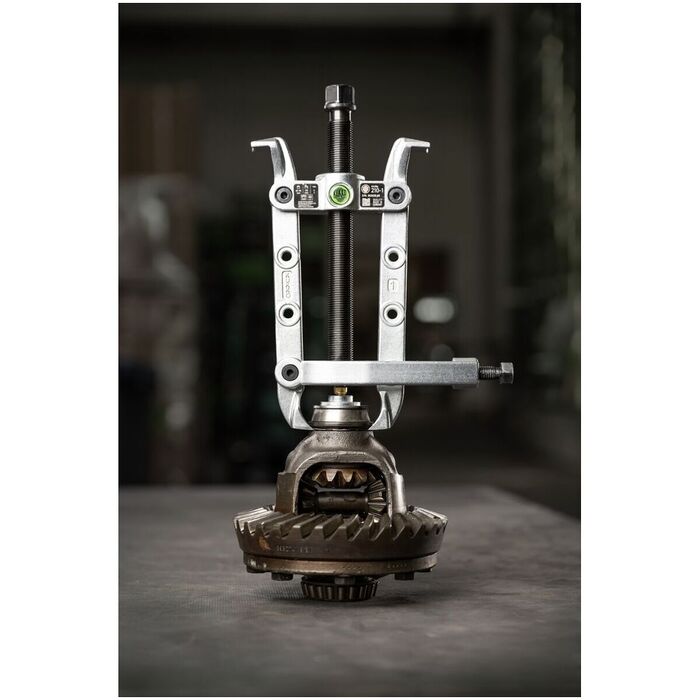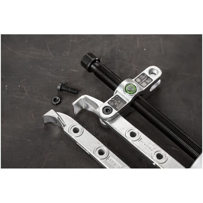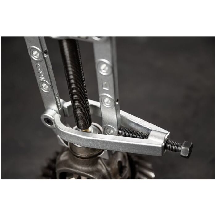 Ena sidan med demonteringsklor för lossning av infällt monterade detaljer, andra sidan med normala avdragningshakar. Vid demontering pressas demonteringsklorna in mellan lager och lagersäte genom att tvingen dras åt. Därefter dras lagret bort med hjälp av spindeln.