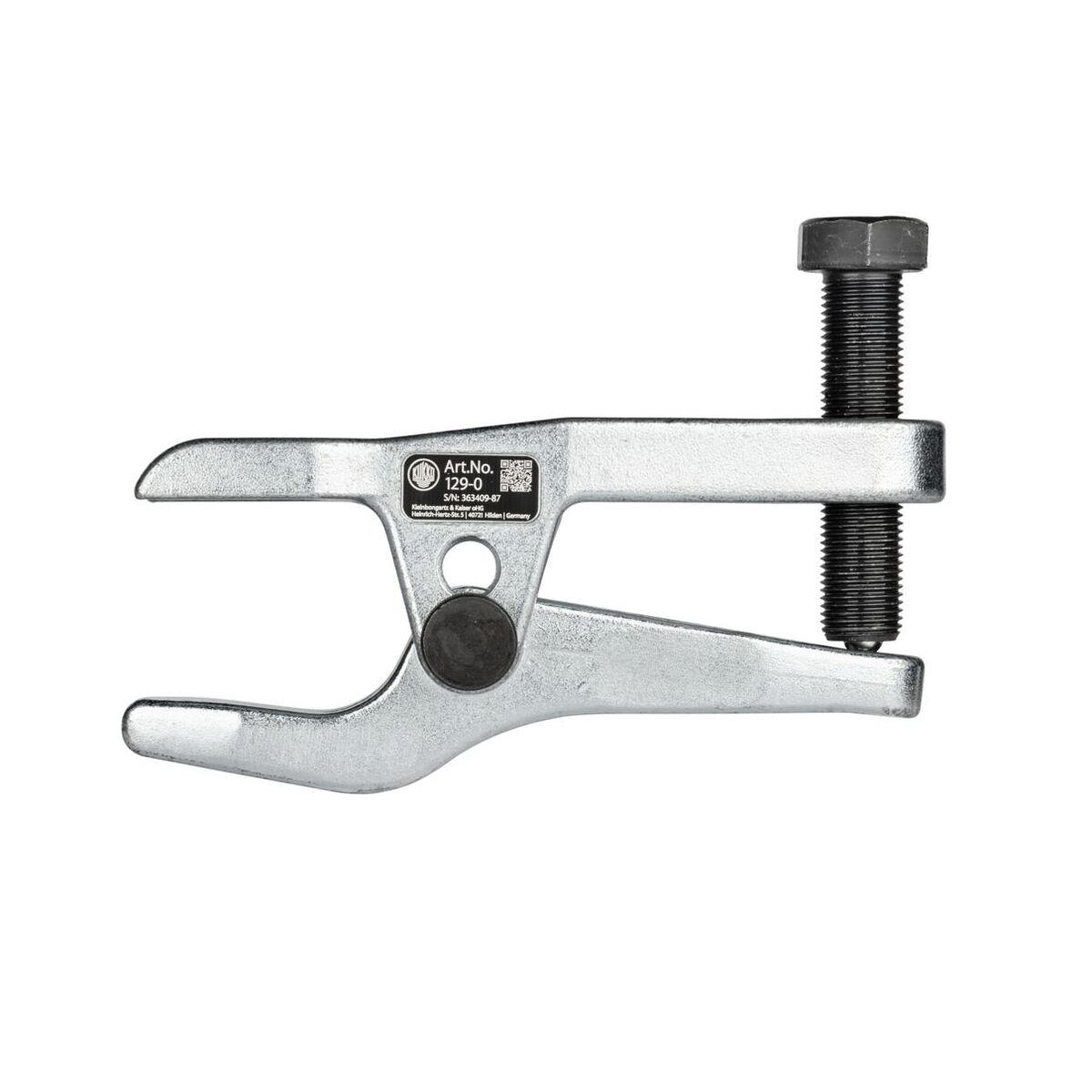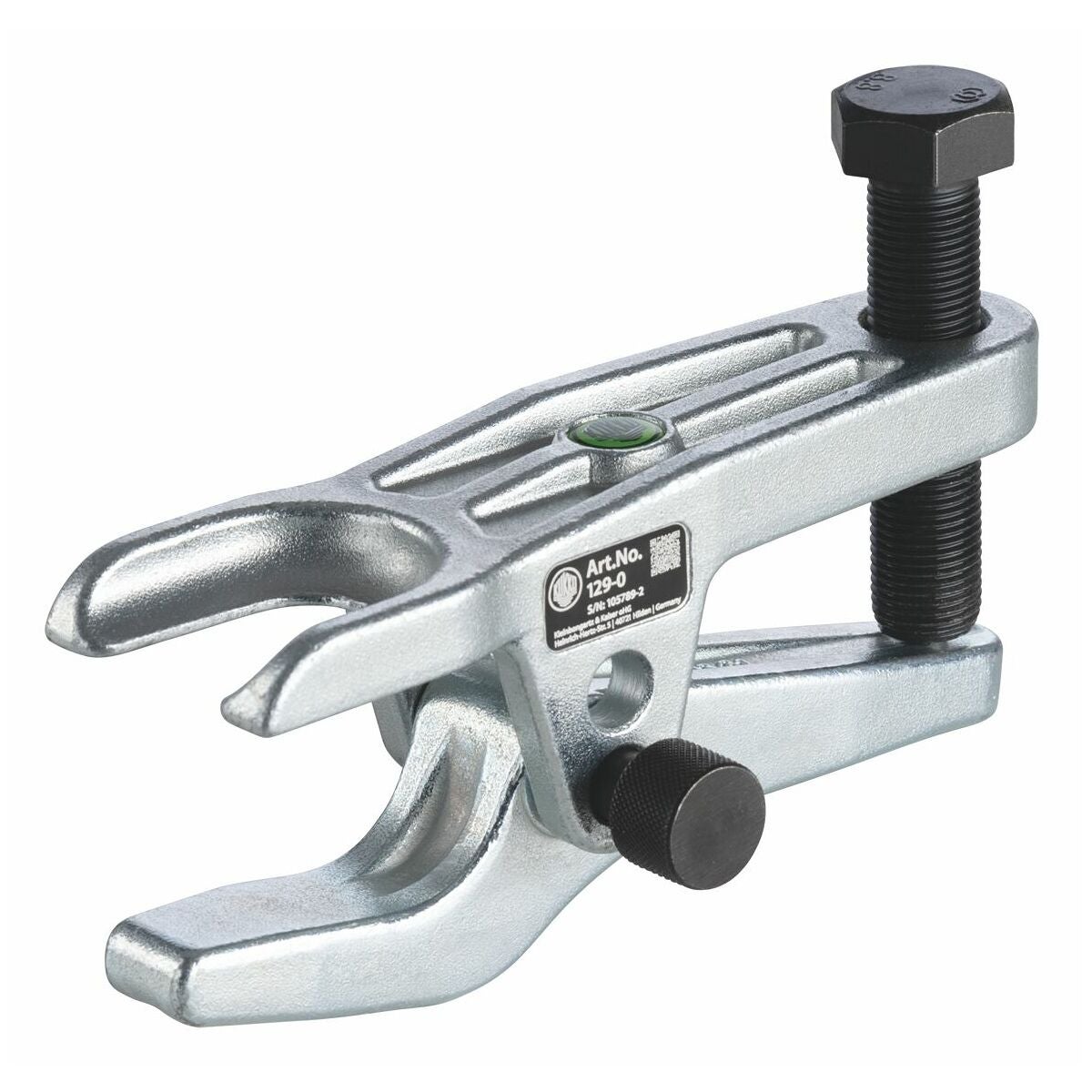 Stabil stomme med pressbygel och kraftig spindel. Av kvalitetsverktygsstål. Snabb och enkel tillämpning: Skjut bara in avdragarbygeln i kulleden och dra åt tryckspindeln. Leden kan delas utan ansträngning.