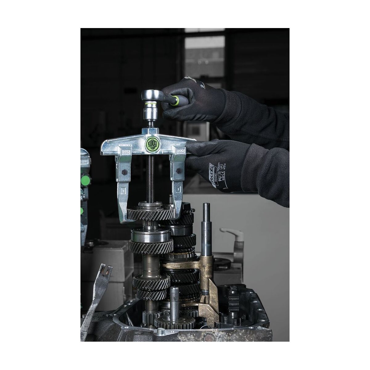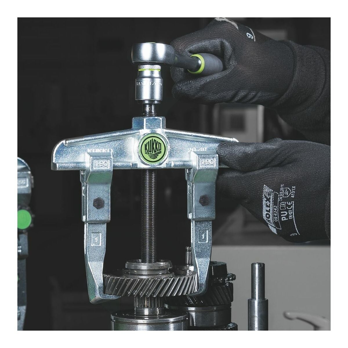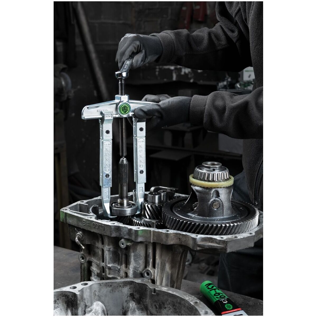 Universellt användbara för demontering av lager, skivor, kugghjul med mera. På 880100 storlek 5 kan spänndjupet på 400 mm (normalt) utökas upp till 700 mm genom att armarna flyttas.