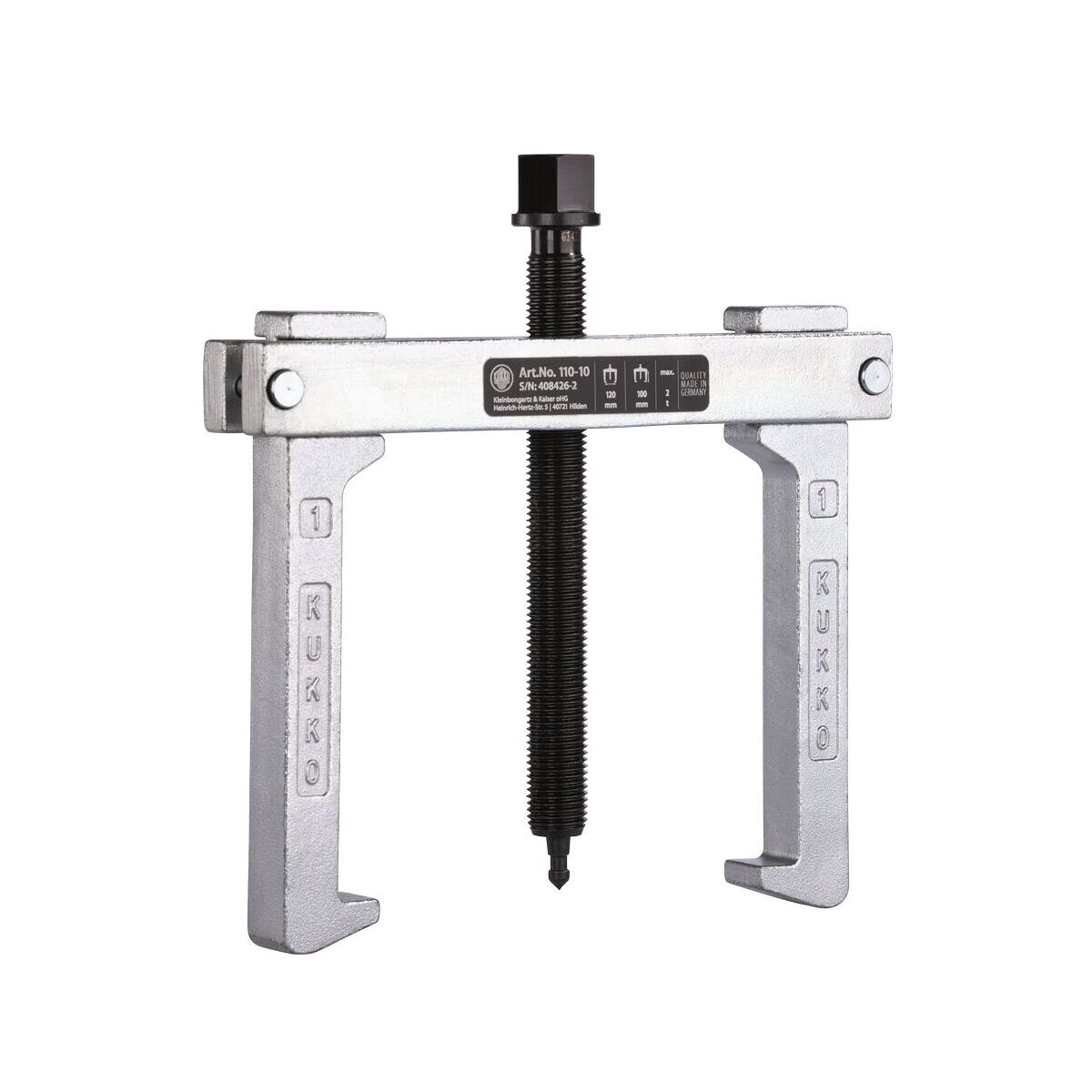 Med vändbara armar (för utvändig och invändig dragning), robust ok och kraftig spindel. Önskad gripvidd ställs enkelt in genom att armarna förskjuts.
