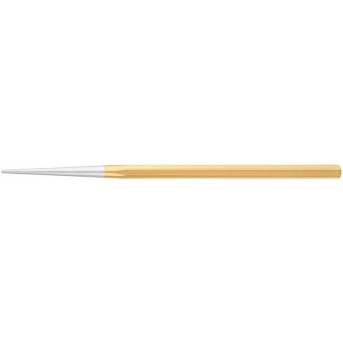 Av specialverktygsstål, härdat, anlöpt skalle, lackerat åttkantigt skaft.