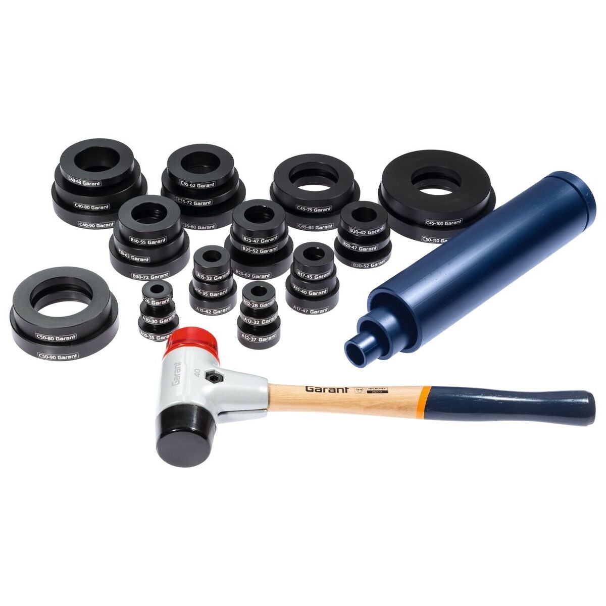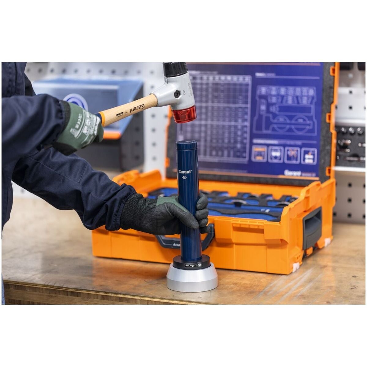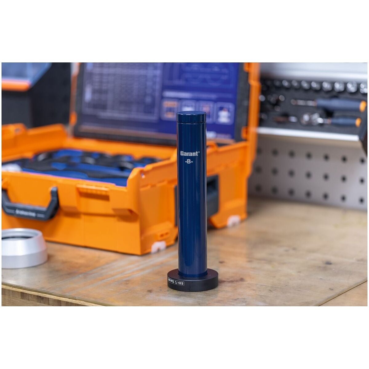 Monteringssats för montering av lager utan att skada axlar, lagerhus eller tätningsringar. Lätta men mycket robusta aluminiumslaghylsor i kombination med 33 slagtåliga slagringar av polyoximetylen för lagerytter-⌀ på 26−110 mm resp. -inner-⌀ på 10−50 mm. Levereras med stötdämpande skonhammare i robust systemväska L-BOXX® av plast.
