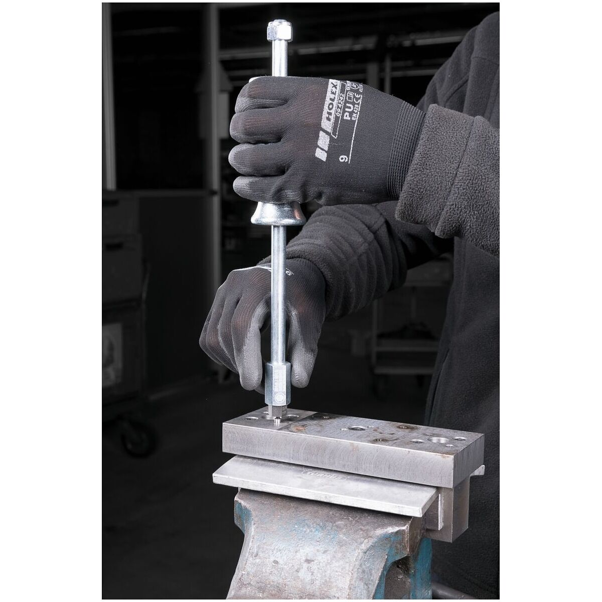För av- och utdragning av delar med invändig gänga (koniska stift eller passtift) samt kullager. I kombination med tillhörande adapter eller invändig utdragareavlägsnas delen genom kraftiga slag med glidhammaren.