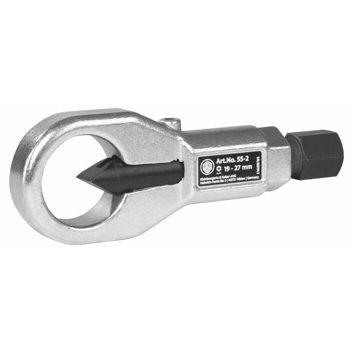 Mekanisk mutterspräckare för spräckning av kärvande eller för hårt dragna muttrar (upp till kvalitetsklass 6) utan att skruvbultarna skadas. Enkelt att dra ut mejseln (med härdade skär), fastnar inte.