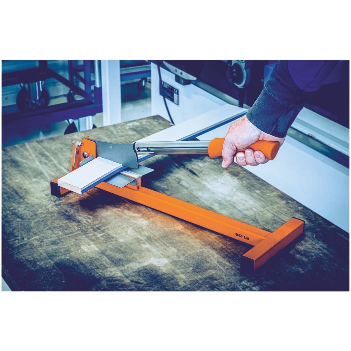 Näst intill obrytbart skär (PTFE-beläggning mot vidhäftning) av högvärdigt specialstål för långa snitt. Robust, lätt konstruktion som även kan användas som bordsverktyg, inklusive säker låsning. Mothåll med anslag lämpliga för snitt i 45° eller 90°.