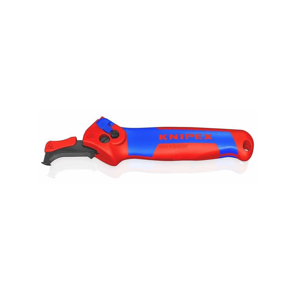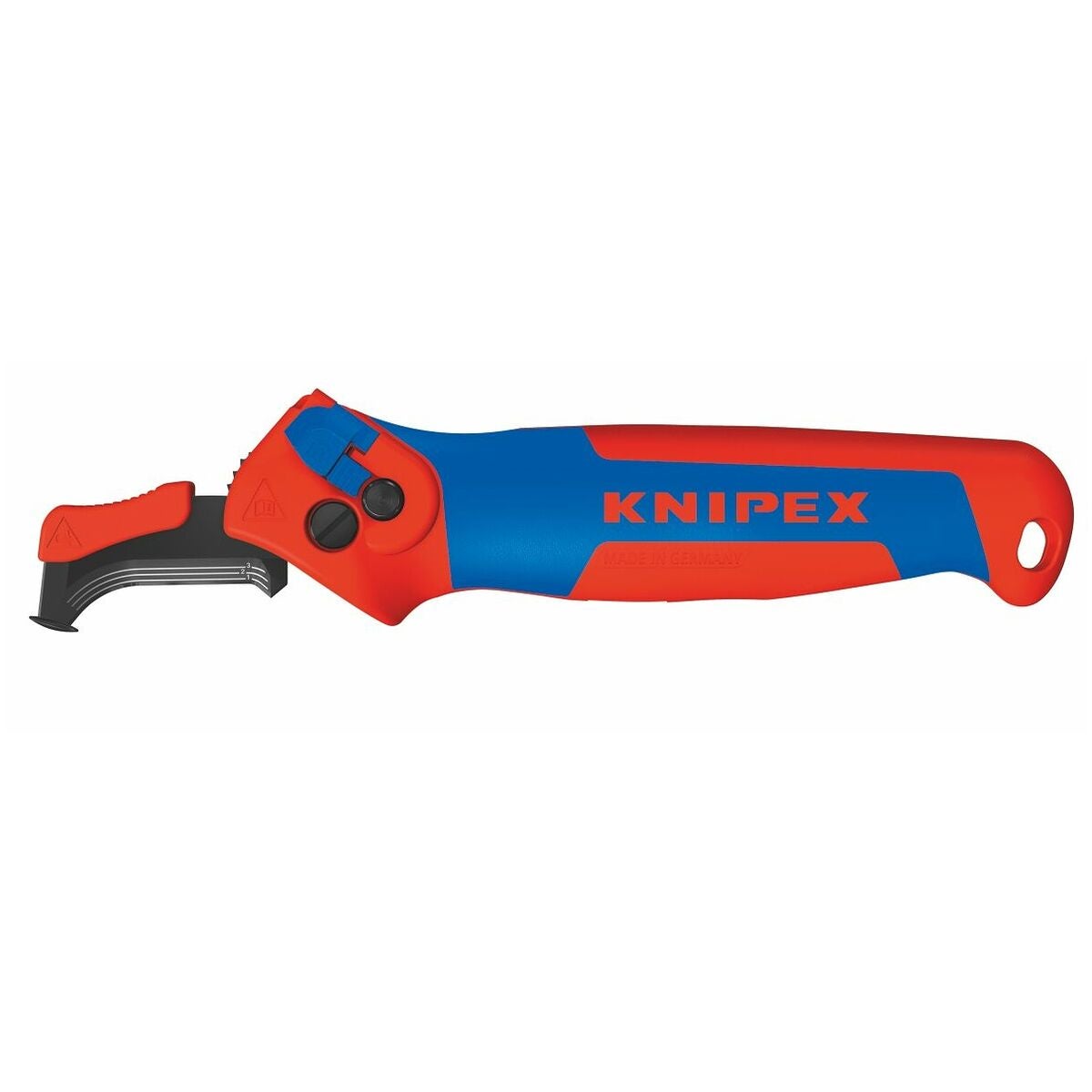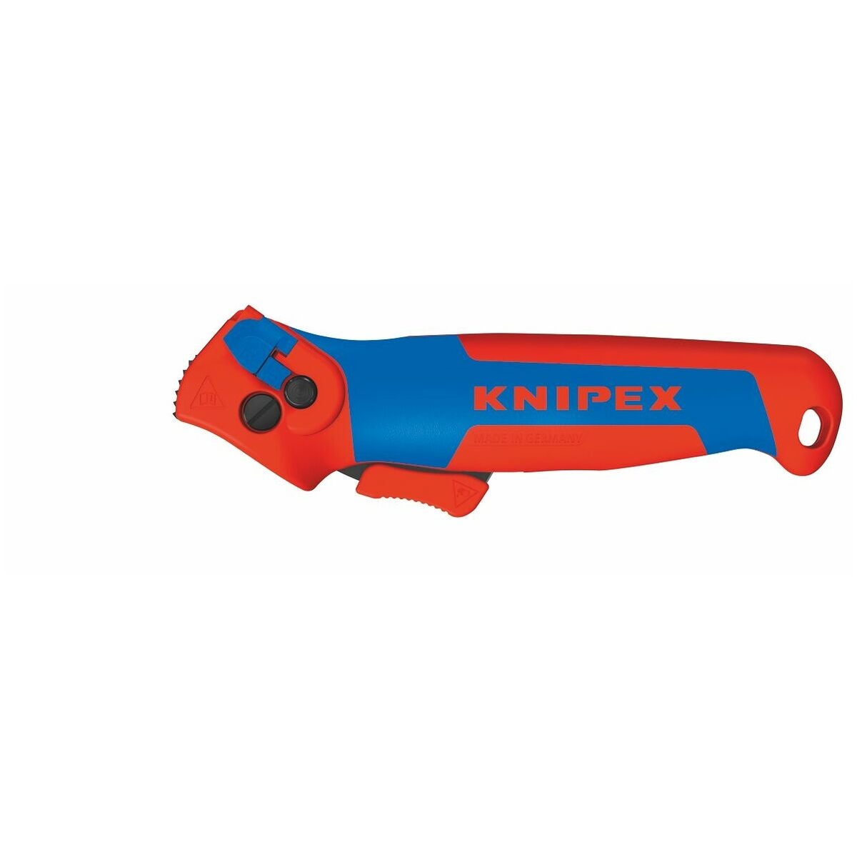 3-stegs säkring av klingan med säkerhetslås, skjutreglage, tryckknapp. Klinga med fyra spärrlägen: Hopfällt, rakt, vinklat och rörligt. Separerar även mycket hårda eller tuffa plastmantlar upp till 7 mm väggtjocklek. Lämplig för längdgående skärning och rundskärning.