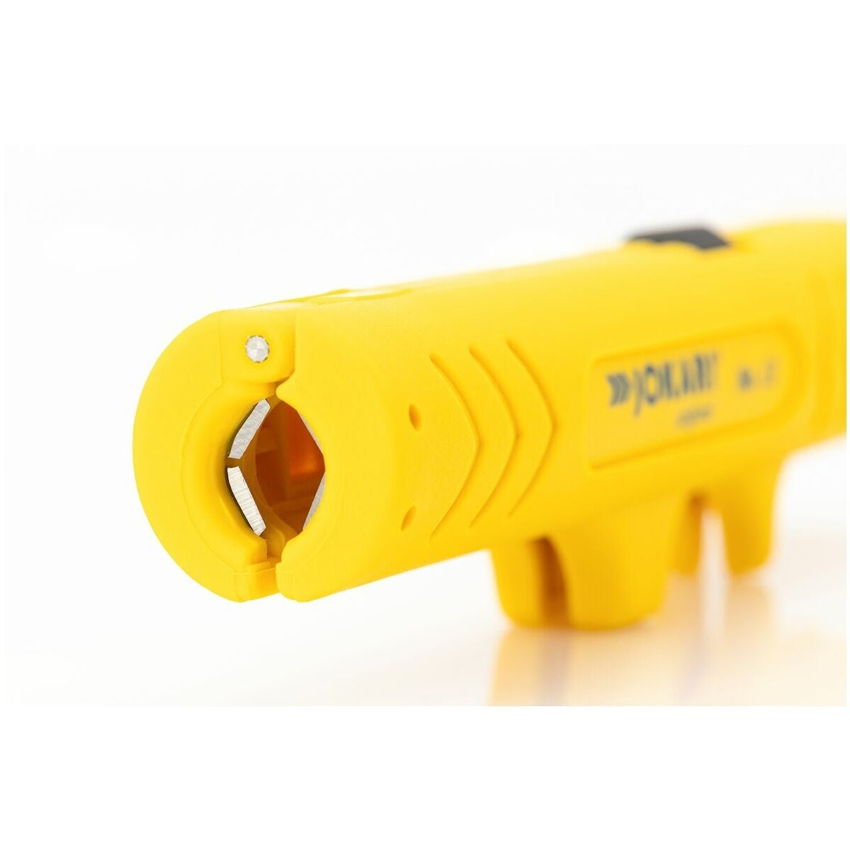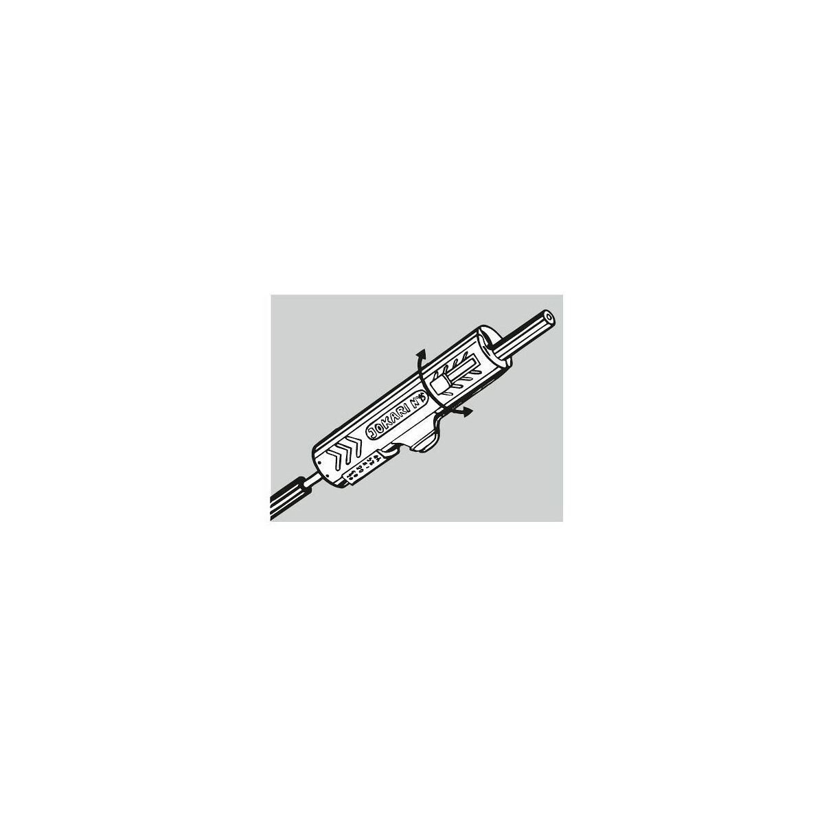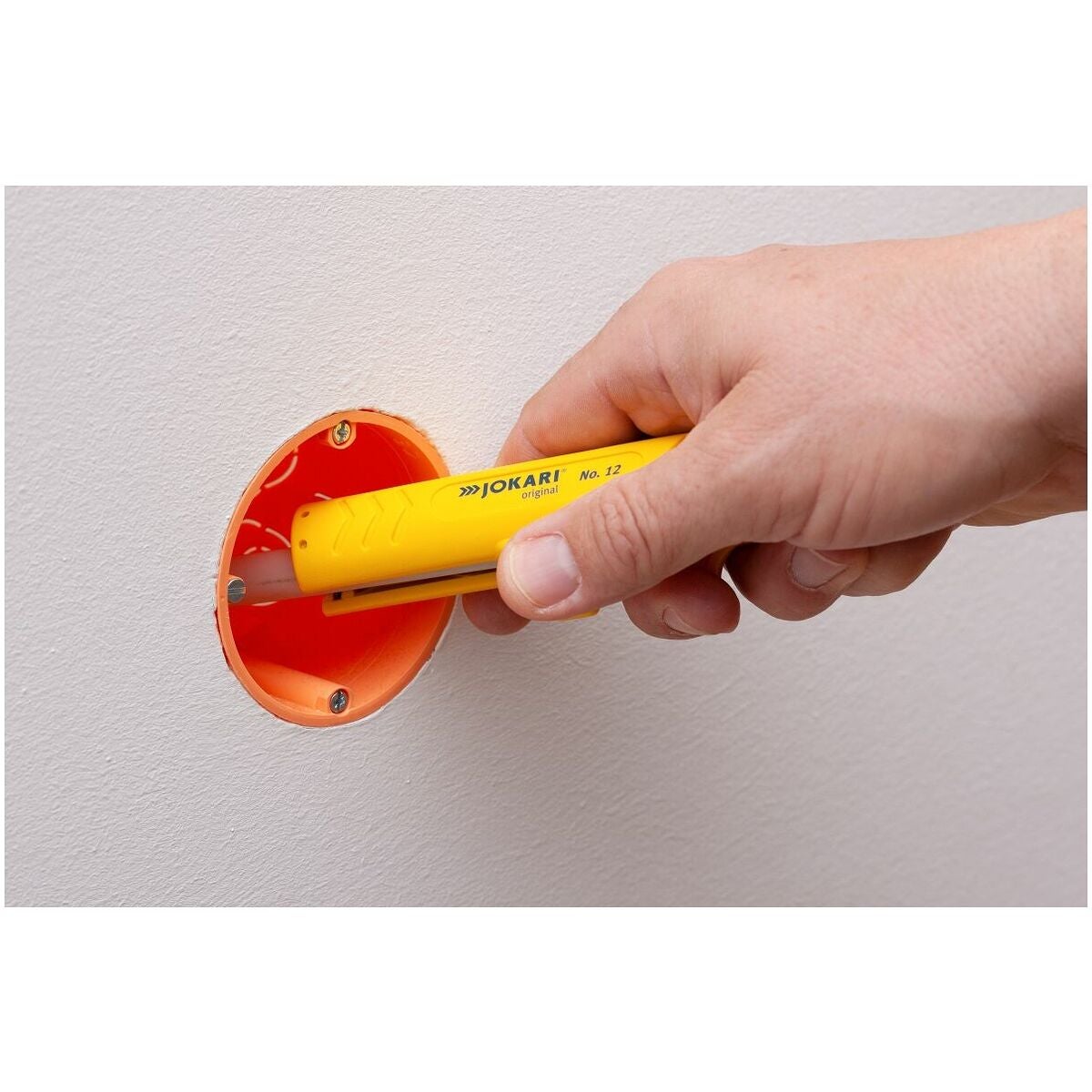 Ihåligt plasthandtag med fast ingjutna knivblad. Enkel 'avisolering i kopplingsdosan'.