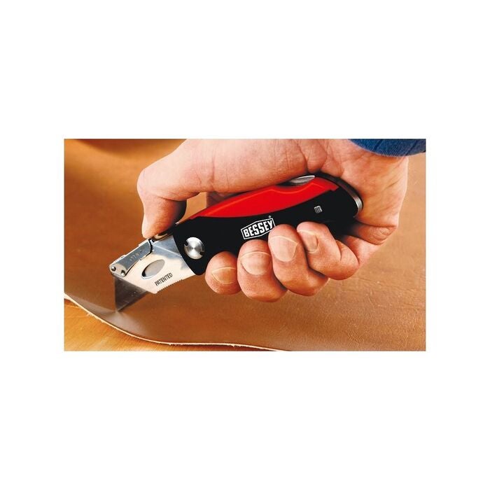 Robust kniv för trapetsklingor (utbytbara). Mindre skaderisk tack vare infällbart blad.