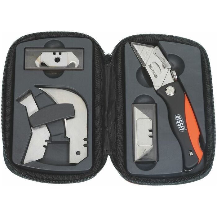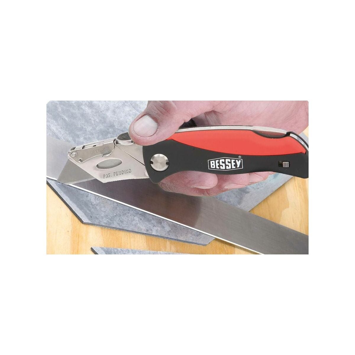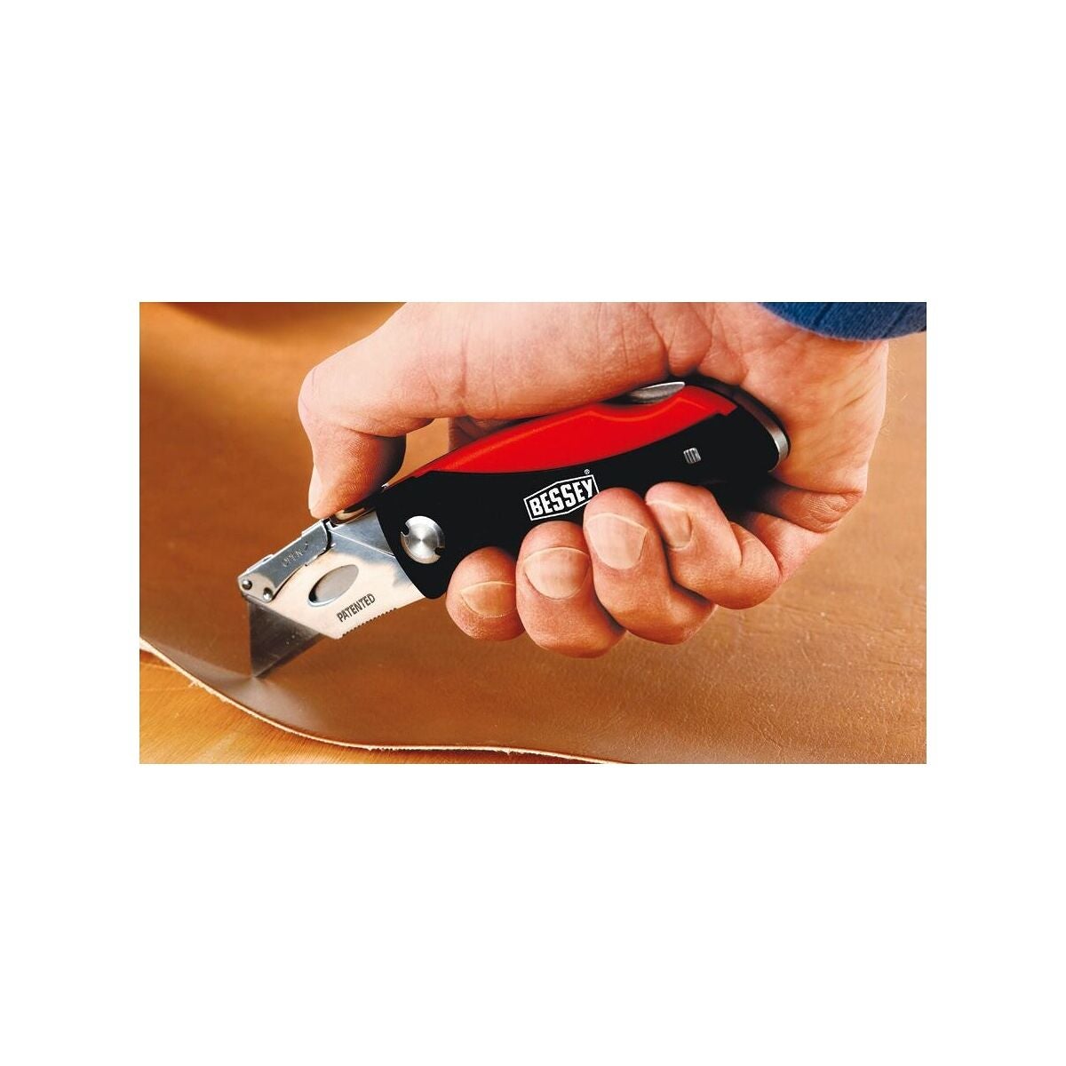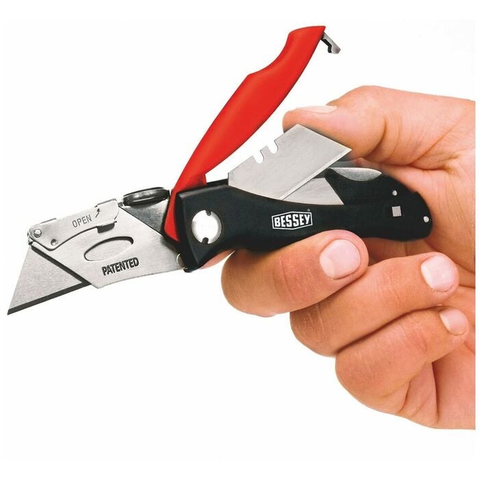 Med komfortplasthandtag, förvaringsfack för lösa blad och bälteshållare. Tumkudde på handtaget för maximal presskraft.