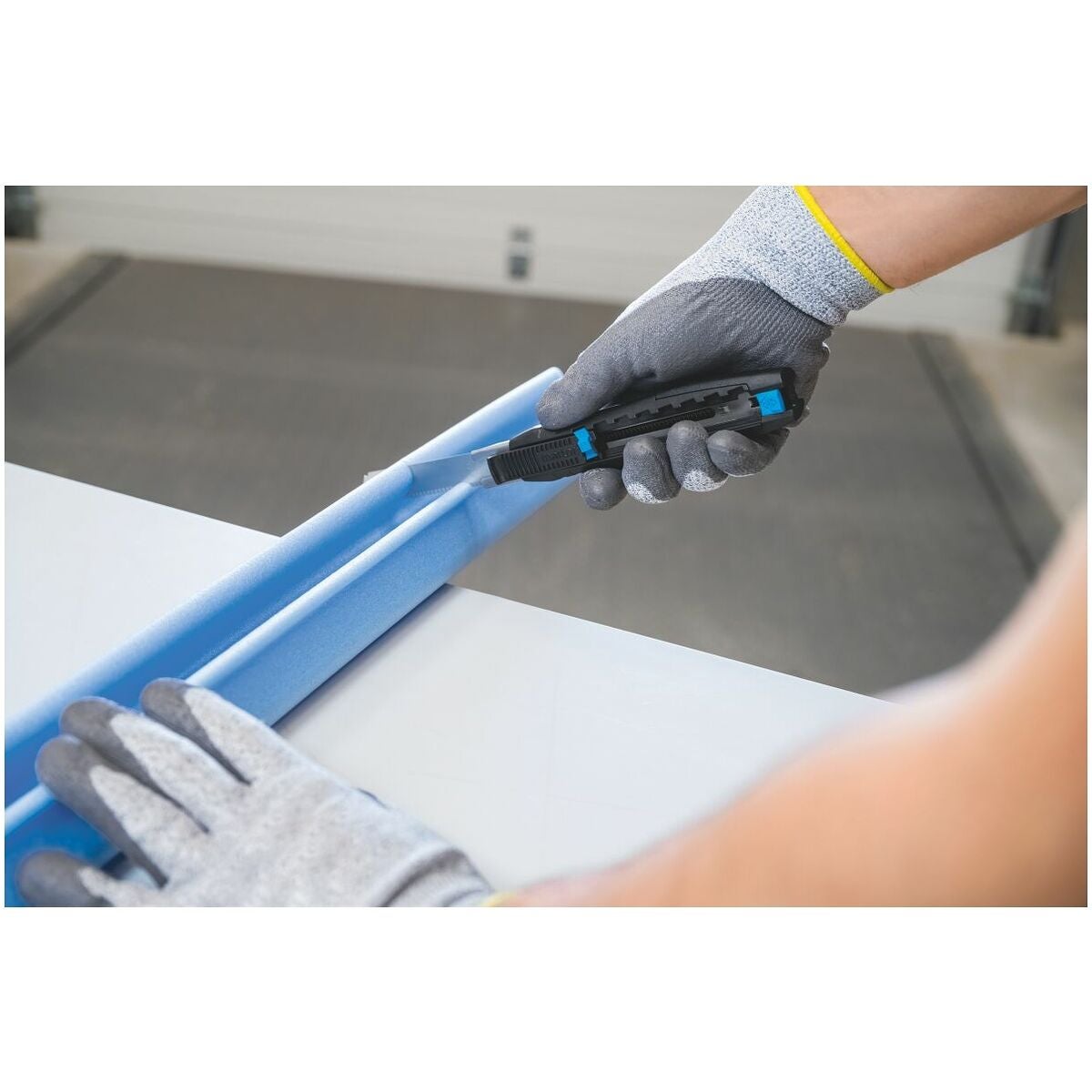 Skär som en Cuttermesser fast säkrare - t.ex. tjockare material som styropor och skumplast, expanderande skum och isolerull, kartong med upp till fyra skikt, säckvaror och alla typer av folier.