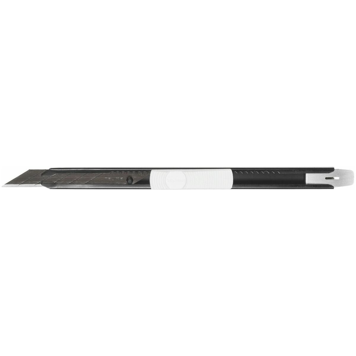 Smal cutter av rostfritt stål i svart för mycket fin och ren skärning. Med 1 brytblad (liknar nr 844918 strl. 10) 7 steg, bredd 9 mm, 30°.